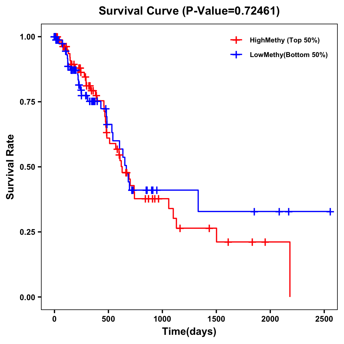 | Survival Curve of Pancreatic Cancer of Expression | Survival Curve of Pancreatic Cancer of Methylation | ||