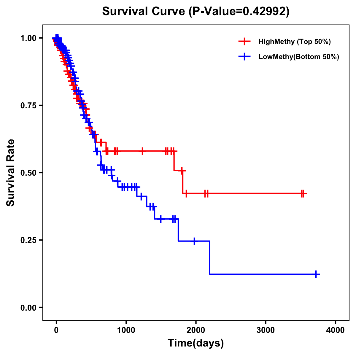 | Survival Curve of Stomach Cancer of Expression | Survival Curve of Stomach Cancer of Methylation | ||