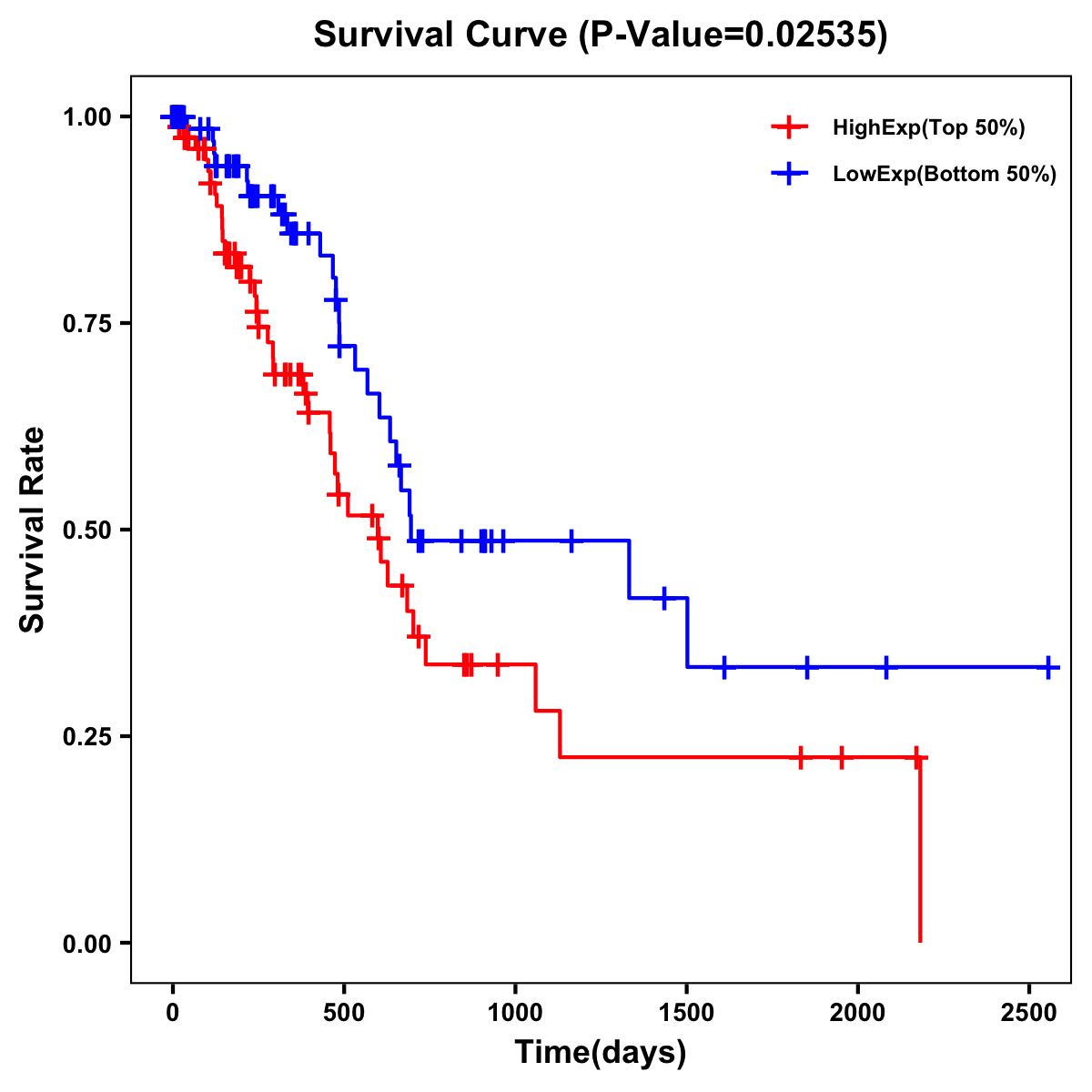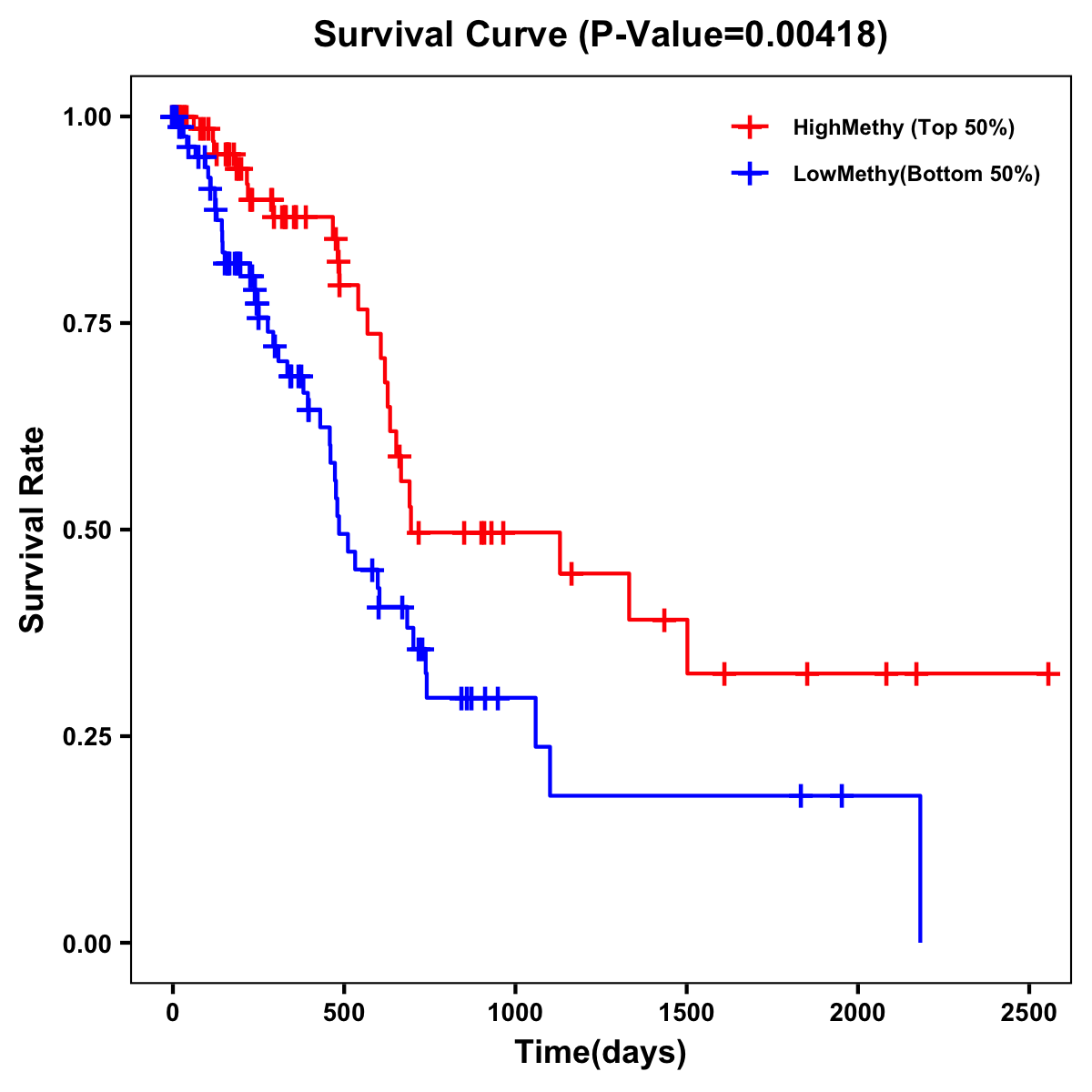 | Survival Curve of Pancreatic Cancer of Expression | Survival Curve of Pancreatic Cancer of Methylation | ||