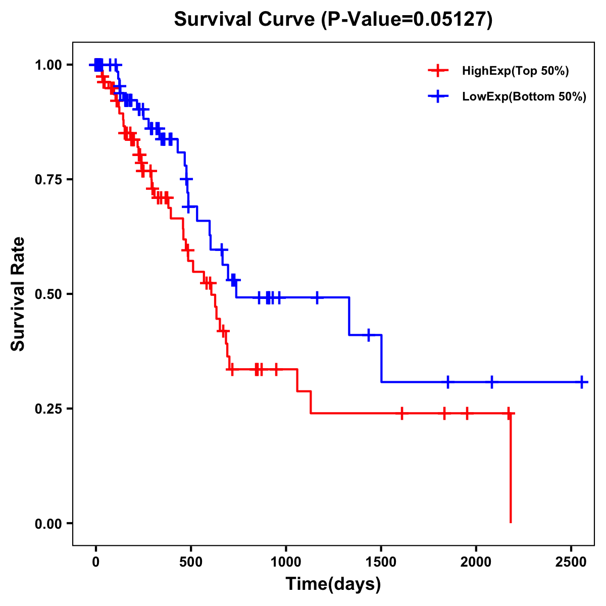 | Survival Curve of Pancreatic Cancer of Expression | Survival Curve of Pancreatic Cancer of Methylation | ||