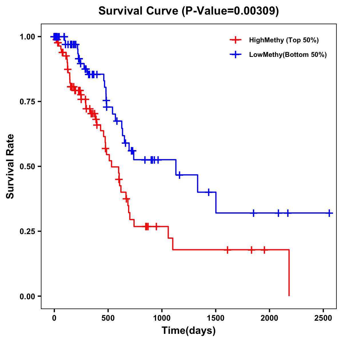 | Survival Curve of Pancreatic Cancer of Expression | Survival Curve of Pancreatic Cancer of Methylation | ||