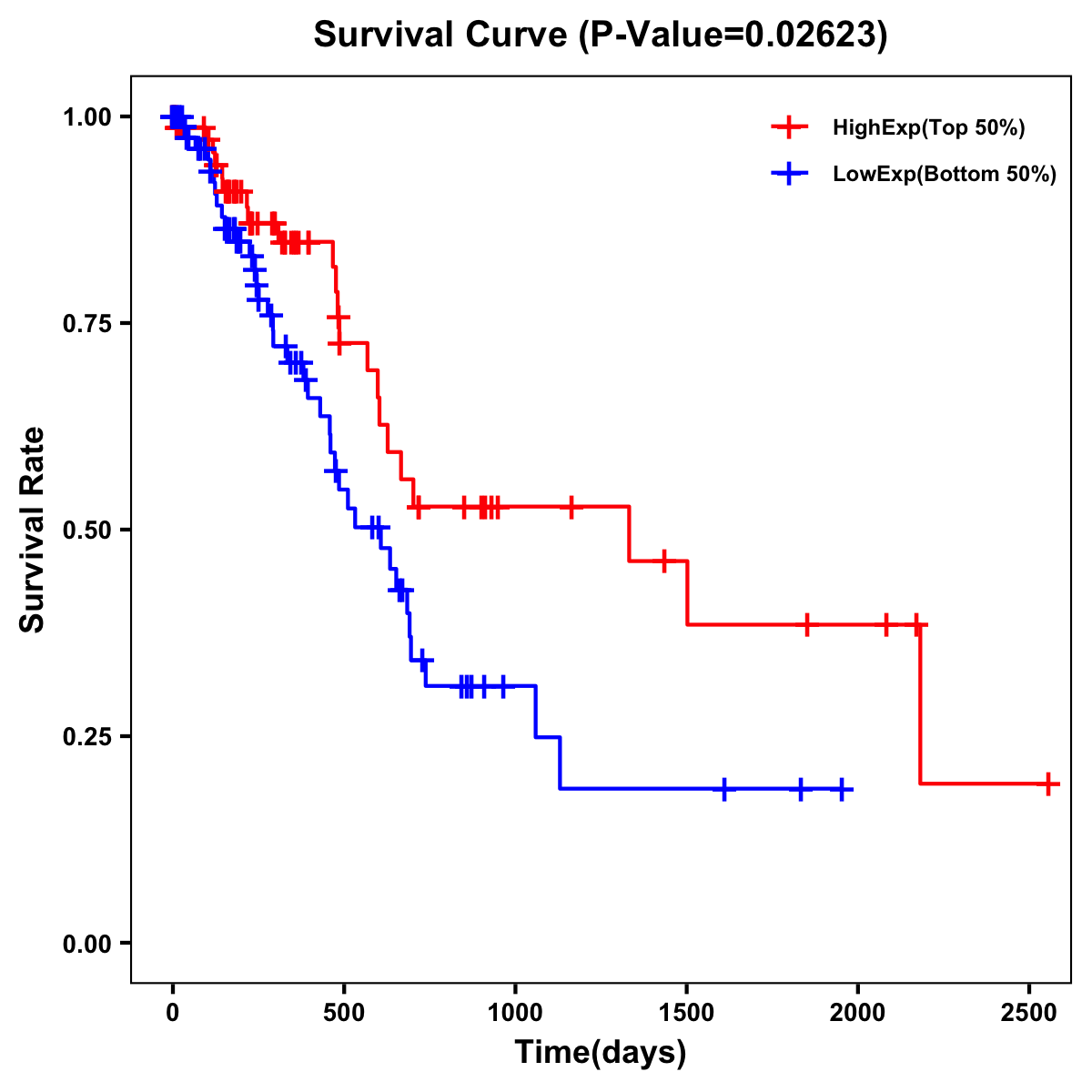 | Survival Curve of Pancreatic Cancer of Expression | Survival Curve of Pancreatic Cancer of Methylation | ||