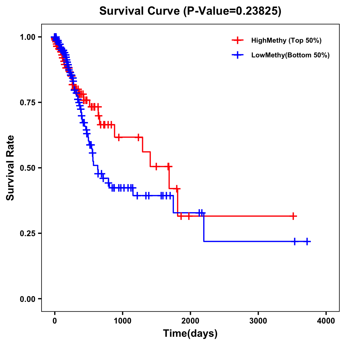 | Survival Curve of Stomach Cancer of Expression | Survival Curve of Stomach Cancer of Methylation | ||