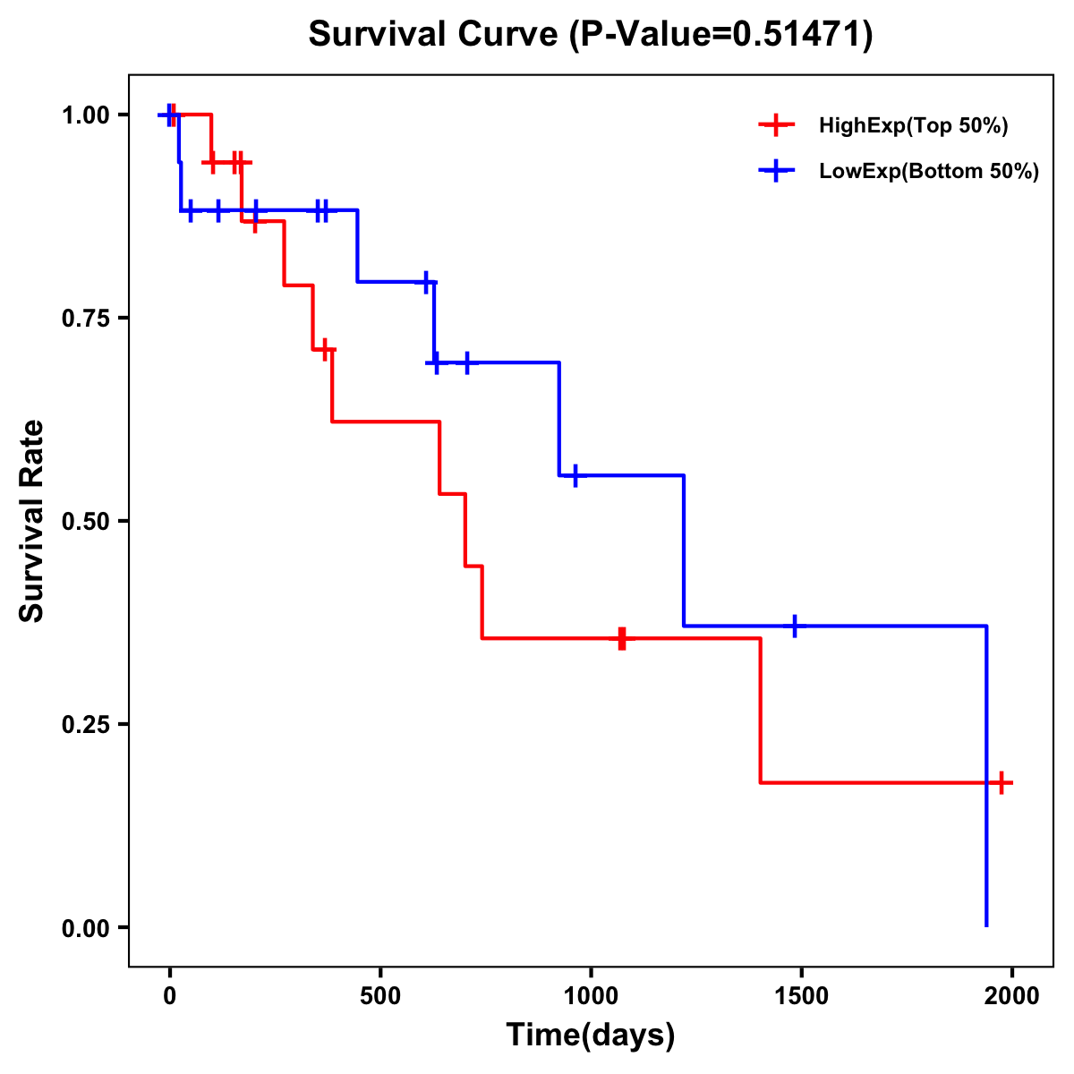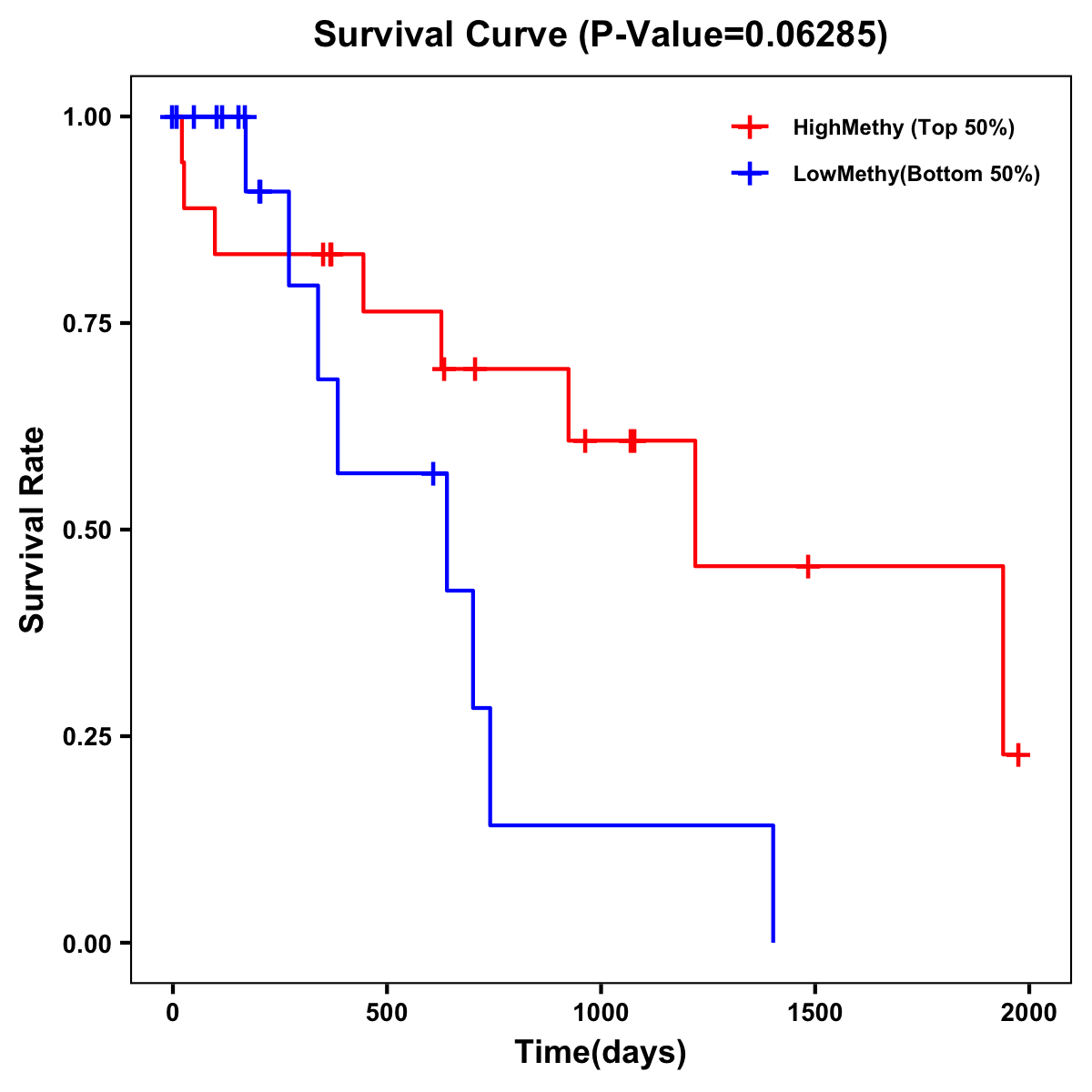 | Survival Curve of Biliary tract Cancer of Expression | Survival Curve of Biliary tract Cancer of Methylation | ||
