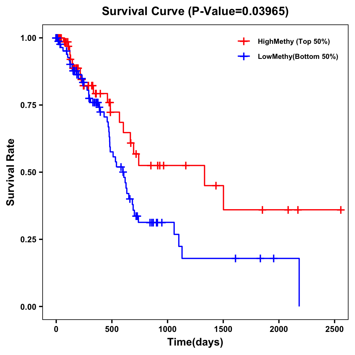 | Survival Curve of Pancreatic Cancer of Expression | Survival Curve of Pancreatic Cancer of Methylation | ||