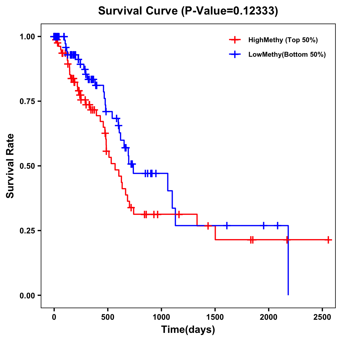 | Survival Curve of Pancreatic Cancer of Expression | Survival Curve of Pancreatic Cancer of Methylation | ||