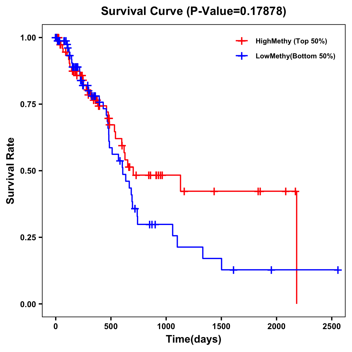| Survival Curve of Pancreatic Cancer of Expression | Survival Curve of Pancreatic Cancer of Methylation | ||