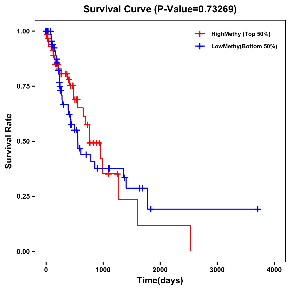 | Survival Curve of Esophagus Cancer of Expression | Survival Curve of Esophagus Cancer of Methylation | ||