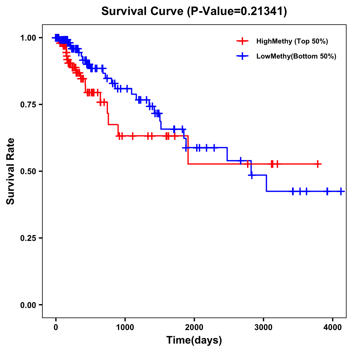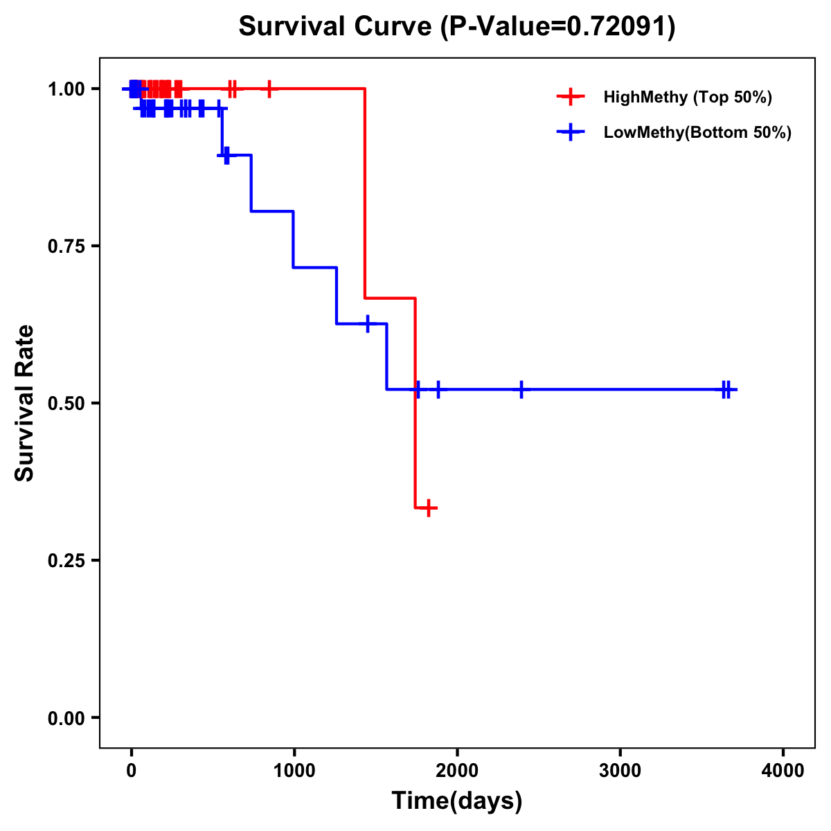 | Survival Curve of Colon Cancer on Methylation Level |