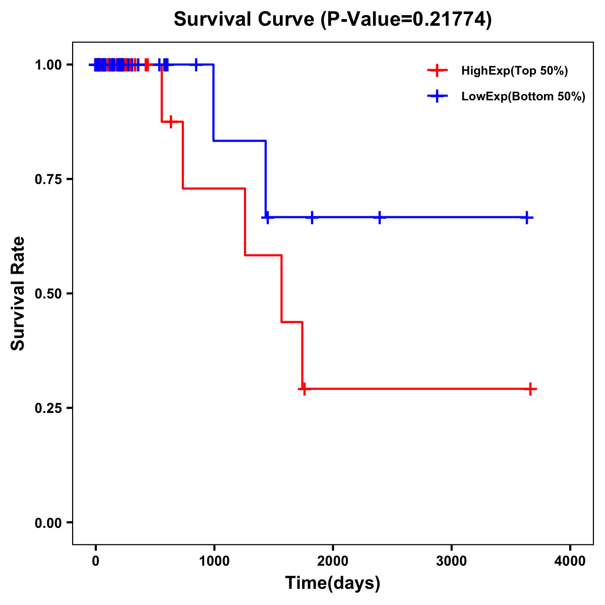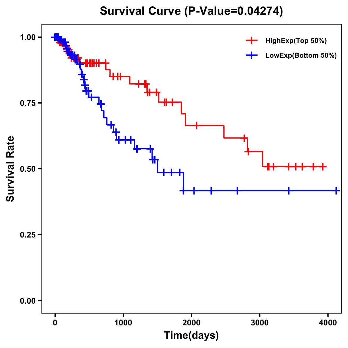 | Survival Curve of Colon Cancer on Expression Level |