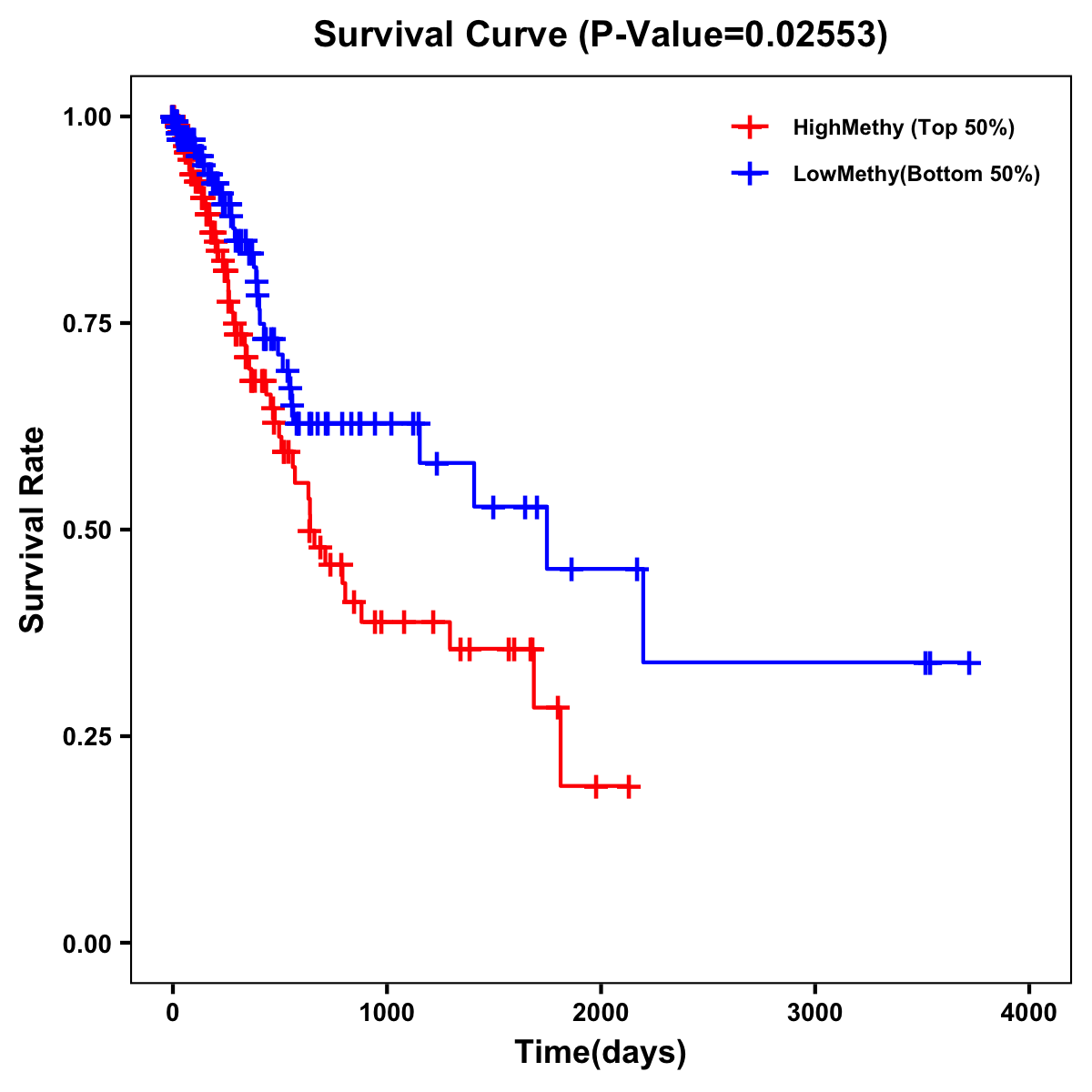 | Survival Curve of Stomach Cancer of Expression | Survival Curve of Stomach Cancer of Methylation | ||