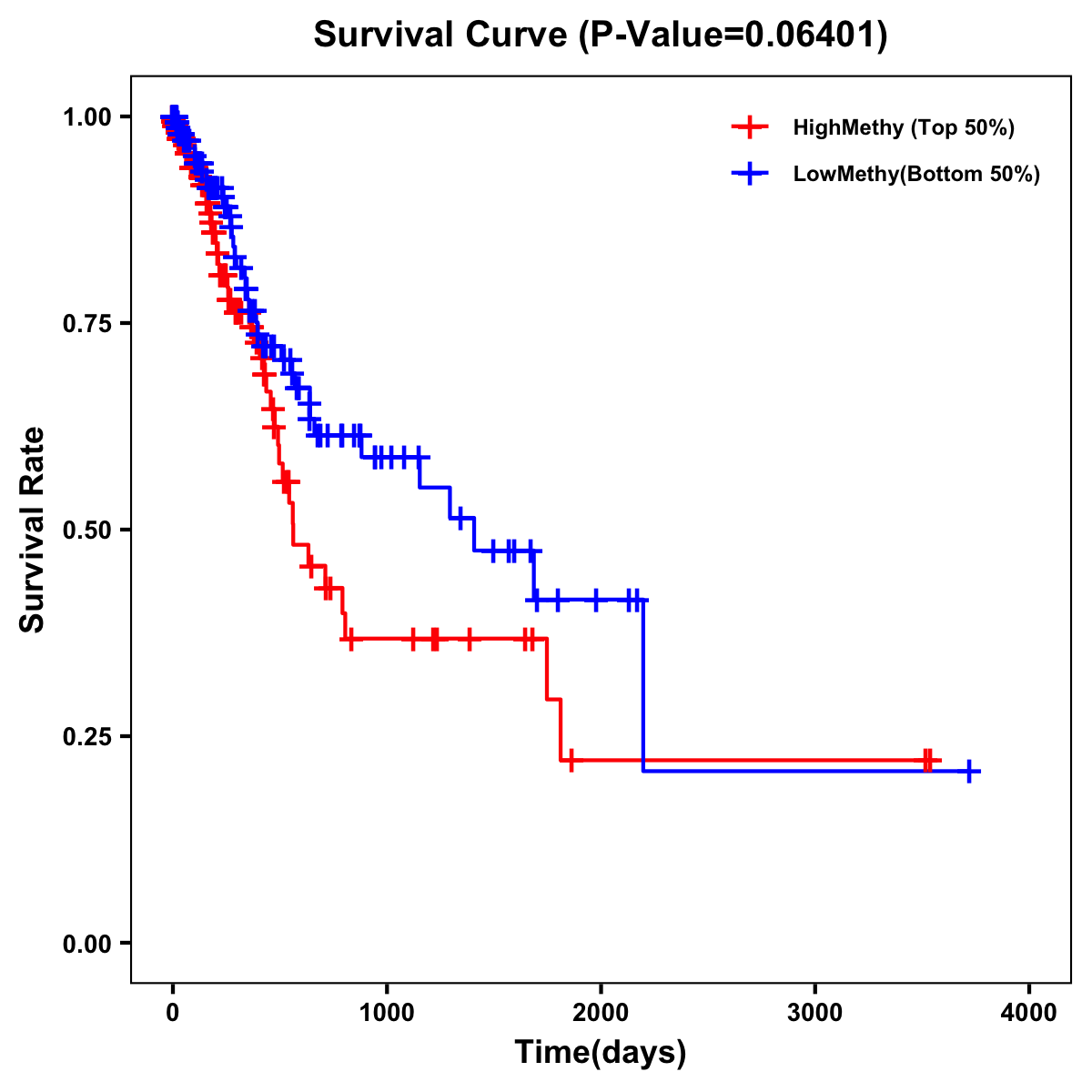 | Survival Curve of Stomach Cancer of Expression | Survival Curve of Stomach Cancer of Methylation | ||
