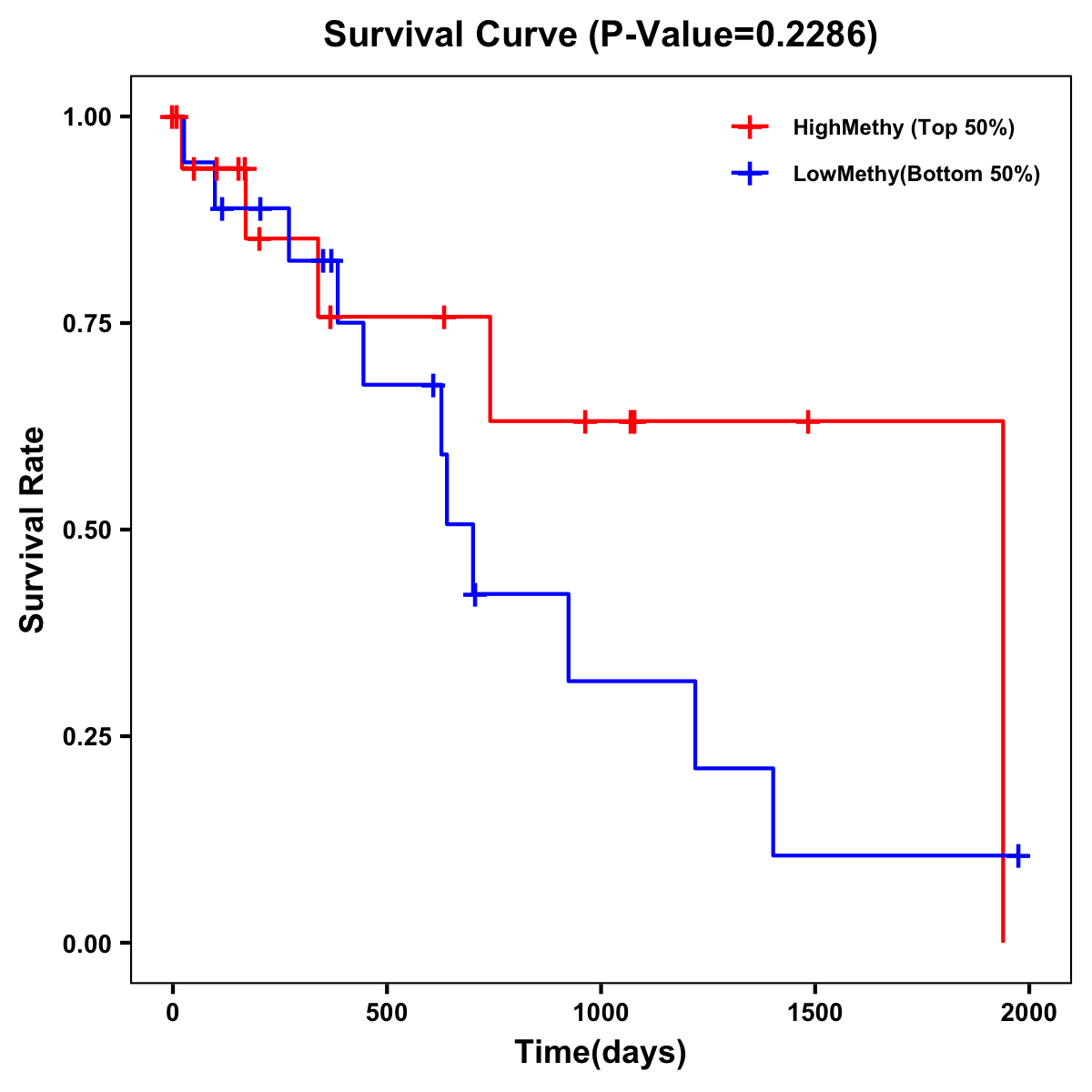 | Survival Curve of Biliary tract Cancer of Expression | Survival Curve of Biliary tract Cancer of Methylation | ||