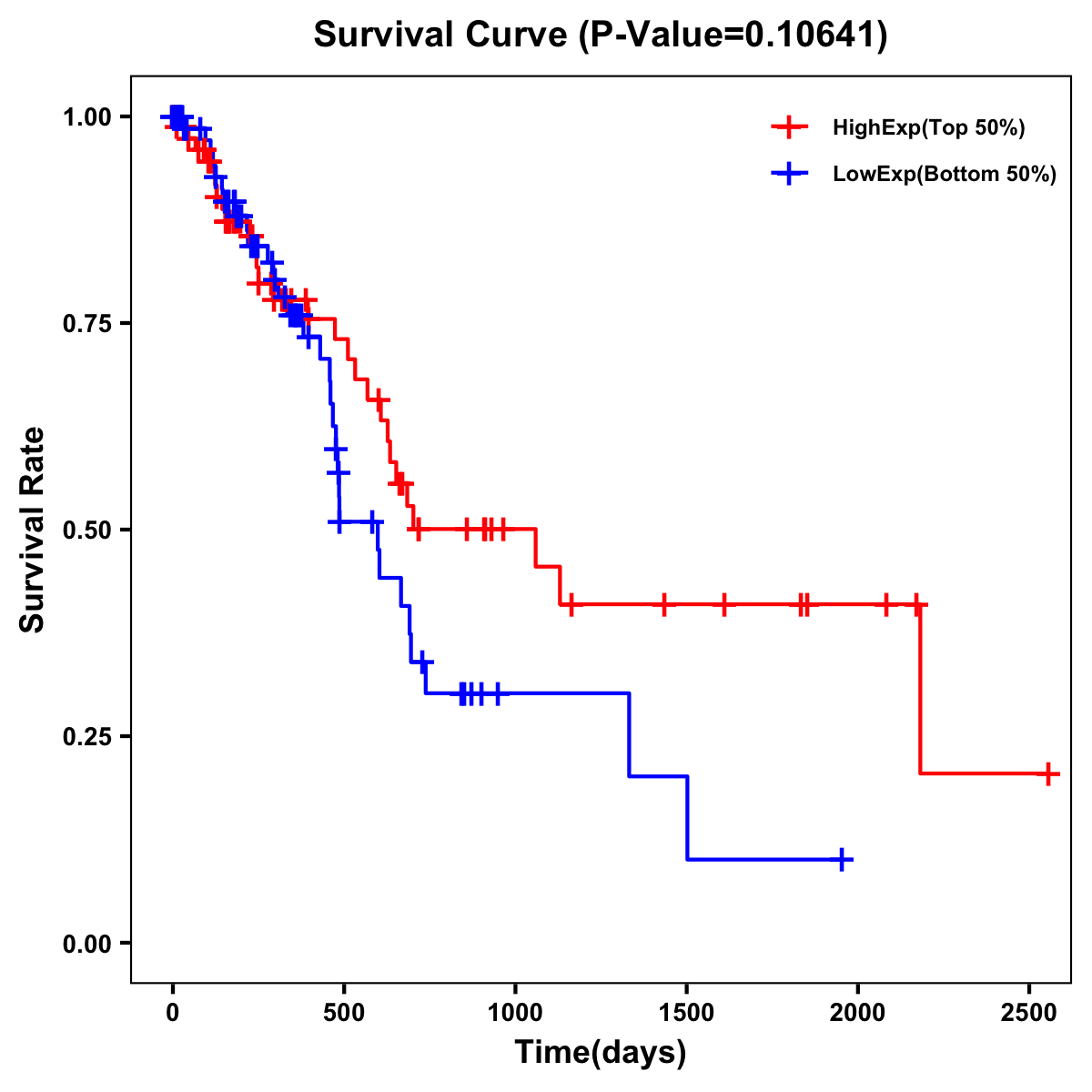 | Survival Curve of Pancreatic Cancer of Expression | Survival Curve of Pancreatic Cancer of Methylation | ||