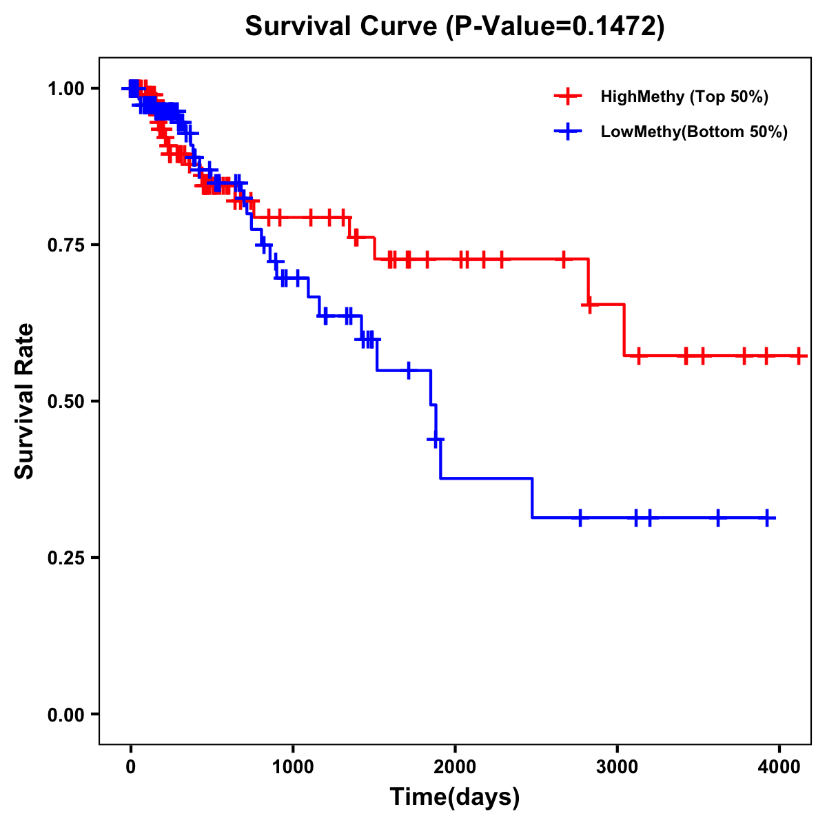 | Survival Curve of Colon Cancer on Methylation Level |