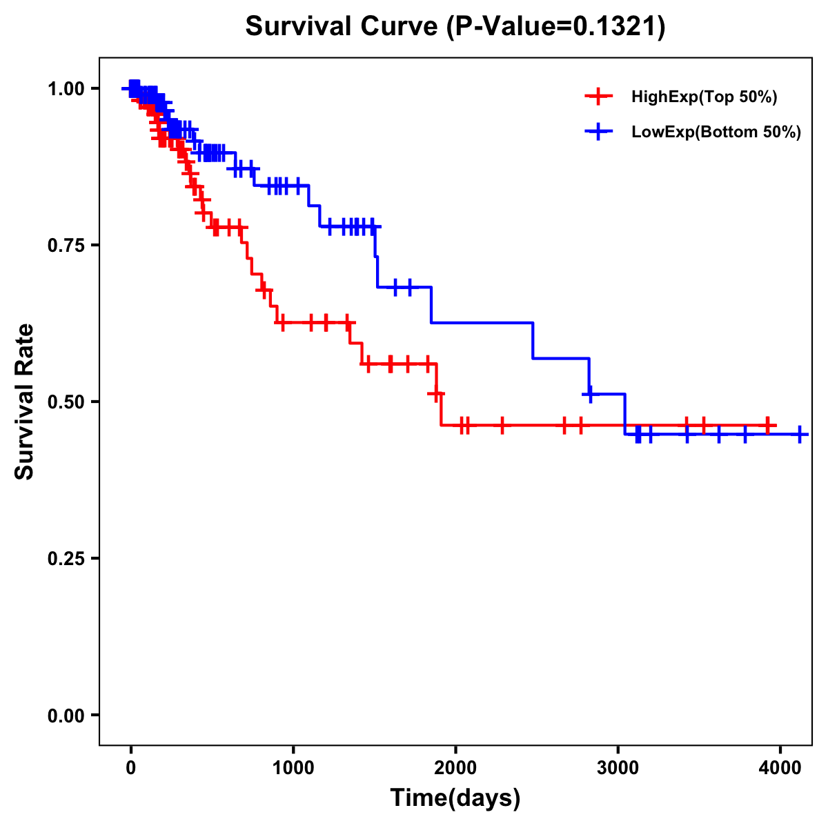 | Survival Curve of Colon Cancer on Expression Level |