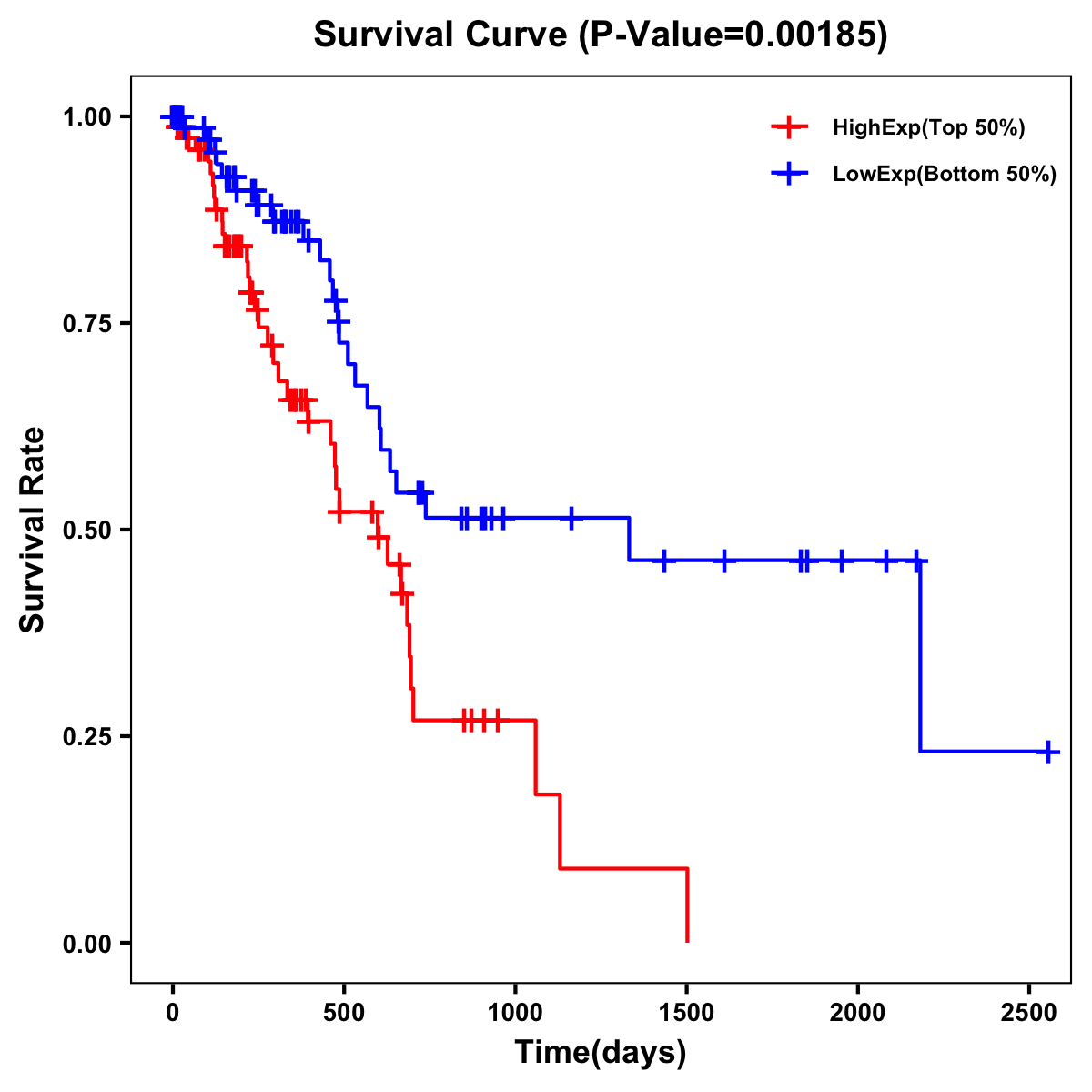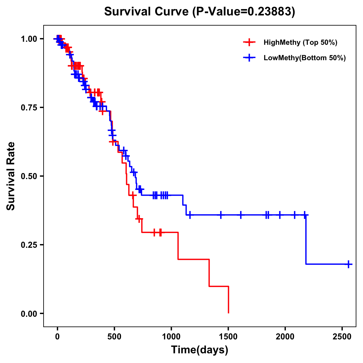 | Survival Curve of Pancreatic Cancer of Expression | Survival Curve of Pancreatic Cancer of Methylation | ||