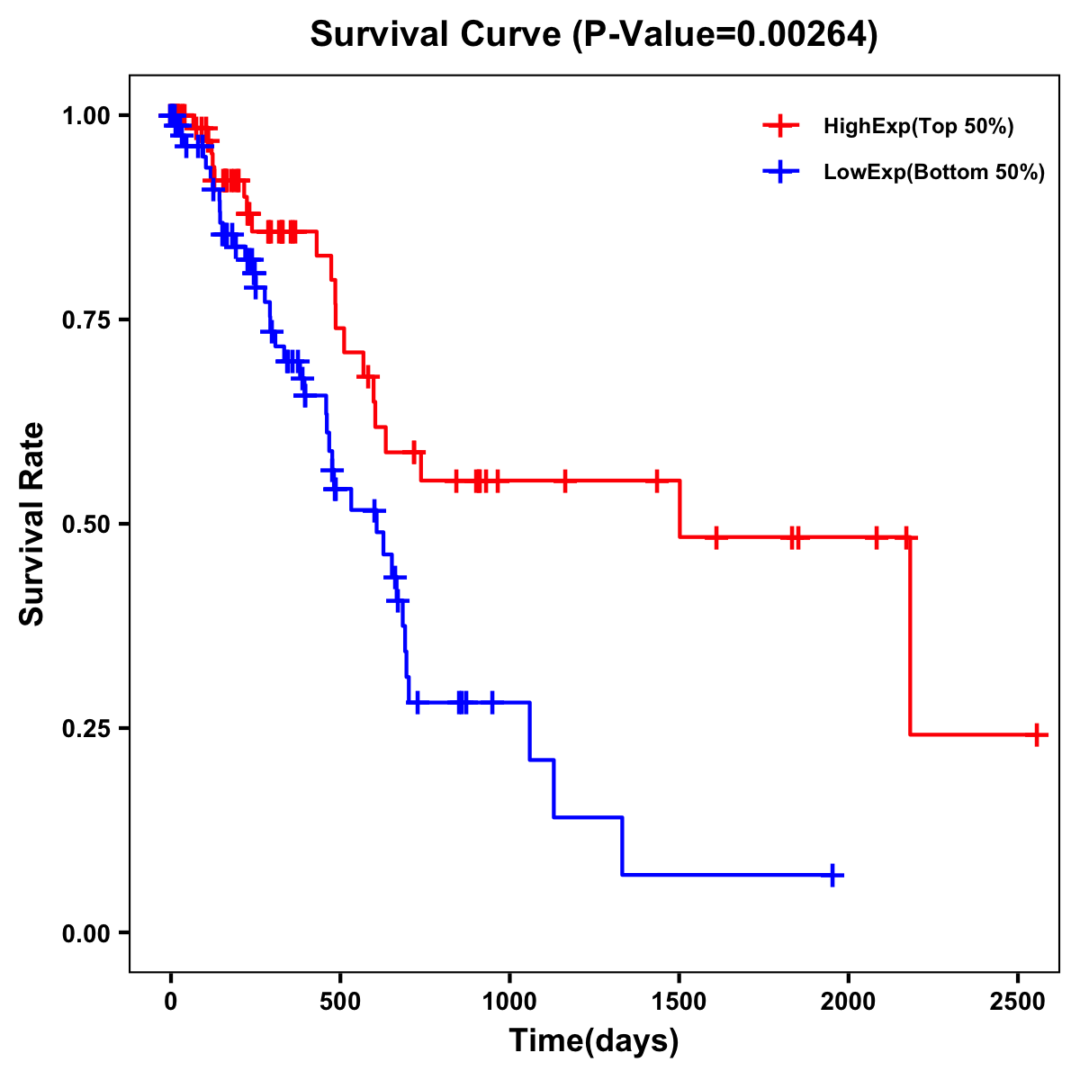 | Survival Curve of Pancreatic Cancer of Expression | Survival Curve of Pancreatic Cancer of Methylation | ||