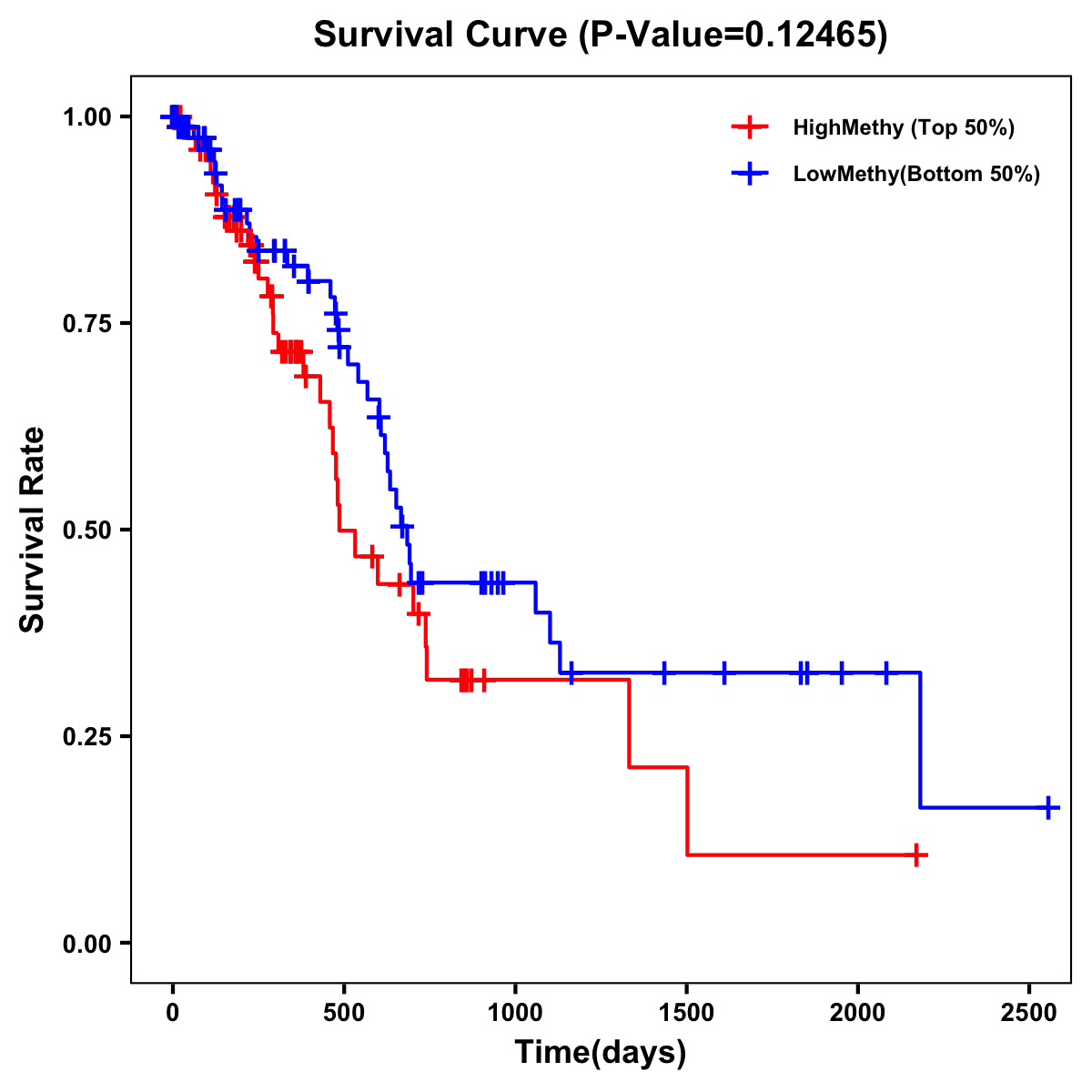 | Survival Curve of Pancreatic Cancer of Expression | Survival Curve of Pancreatic Cancer of Methylation | ||