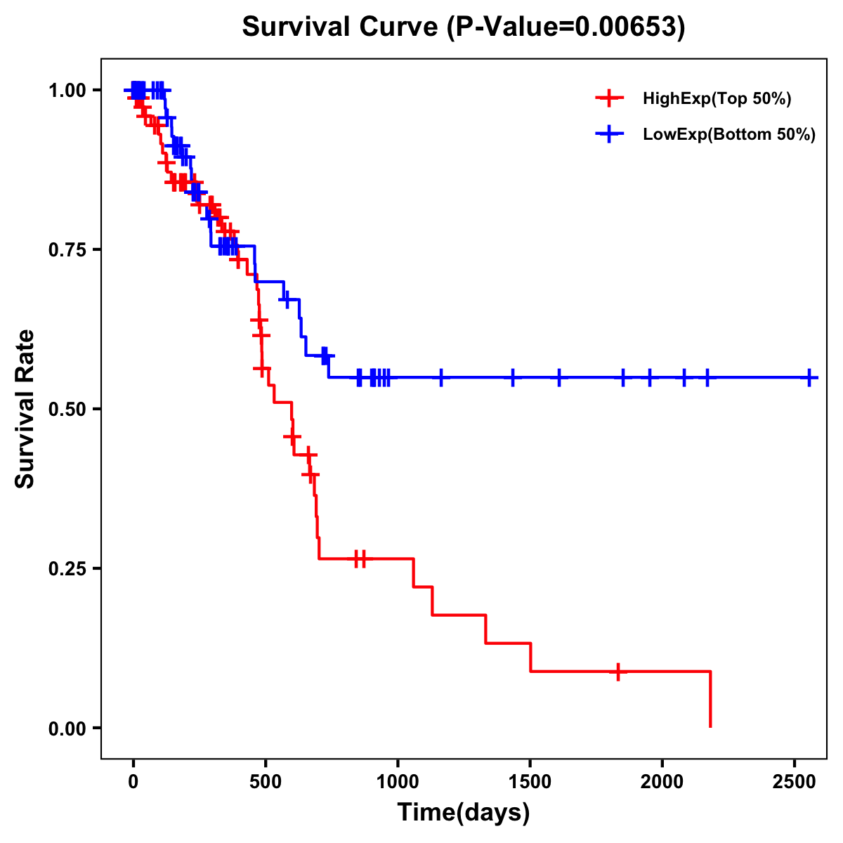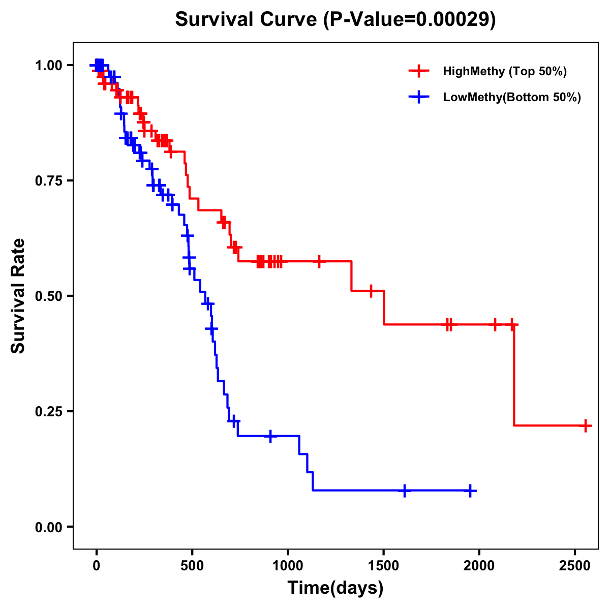 | Survival Curve of Pancreatic Cancer of Expression | Survival Curve of Pancreatic Cancer of Methylation | ||
