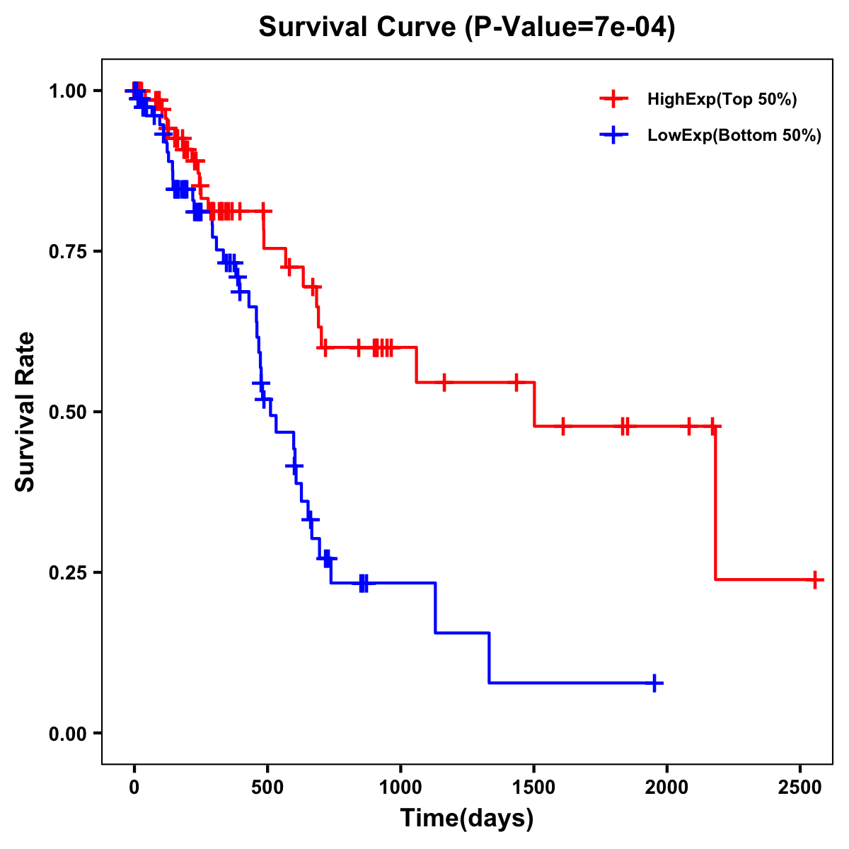 | Survival Curve of Pancreatic Cancer of Expression | Survival Curve of Pancreatic Cancer of Methylation | ||