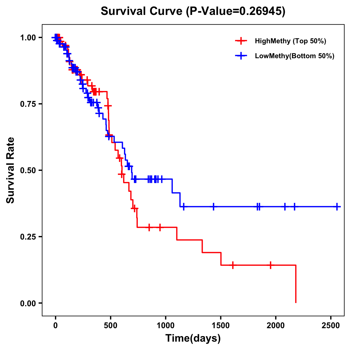 | Survival Curve of Pancreatic Cancer of Expression | Survival Curve of Pancreatic Cancer of Methylation | ||