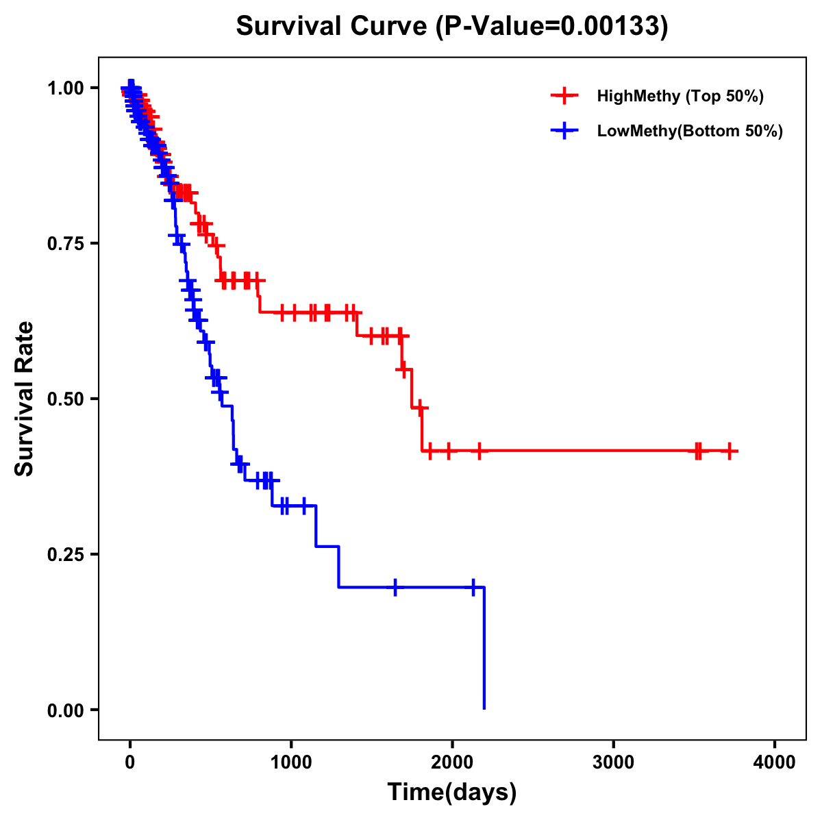 | Survival Curve of Stomach Cancer of Expression | Survival Curve of Stomach Cancer of Methylation | ||