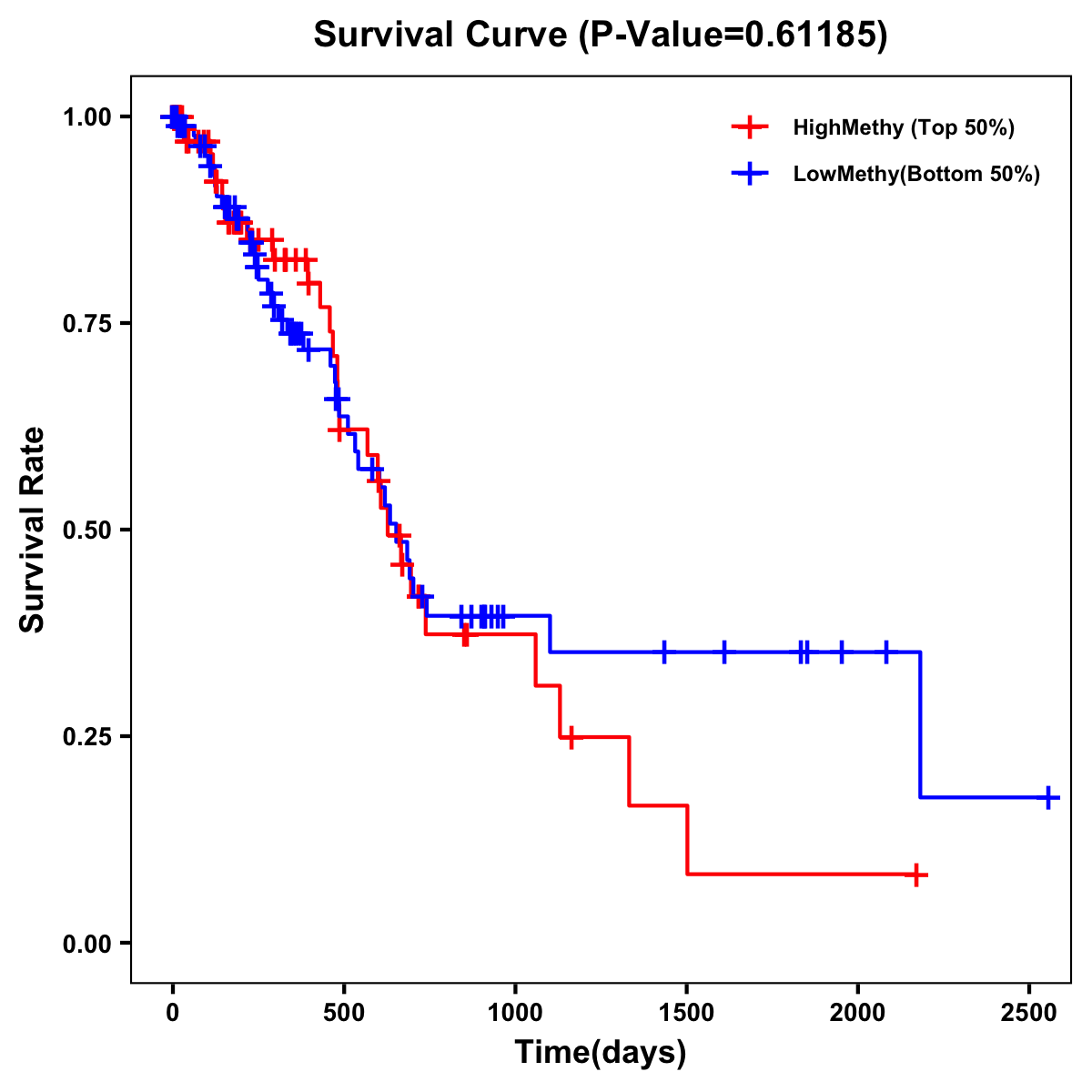 | Survival Curve of Pancreatic Cancer of Expression | Survival Curve of Pancreatic Cancer of Methylation | ||