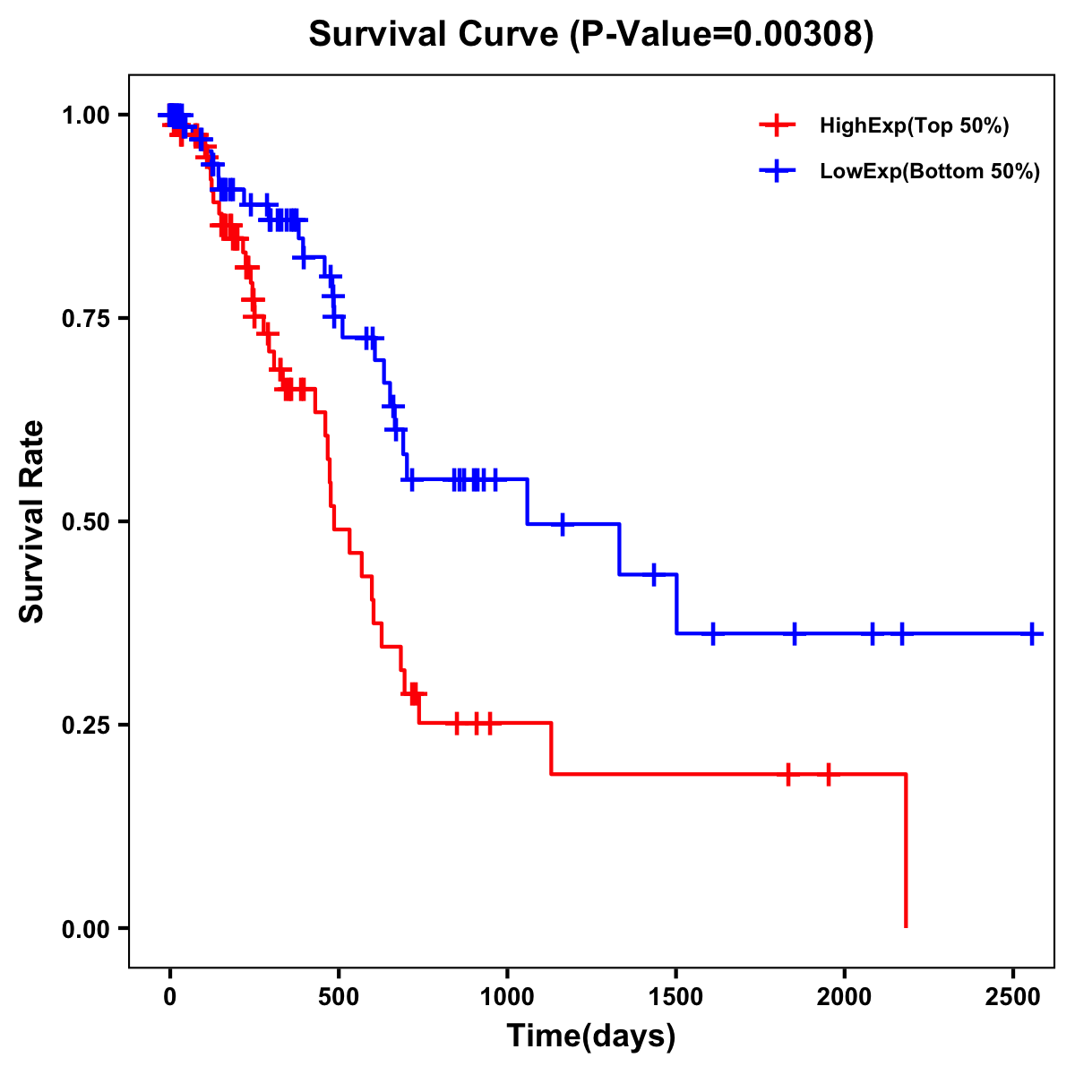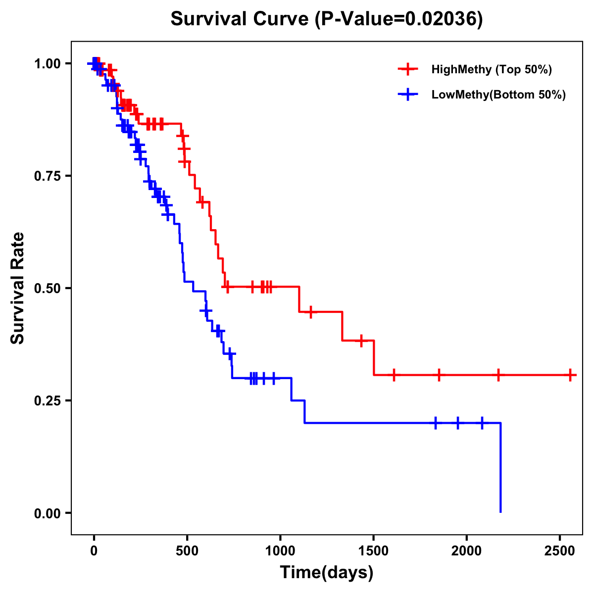 | Survival Curve of Pancreatic Cancer of Expression | Survival Curve of Pancreatic Cancer of Methylation | ||