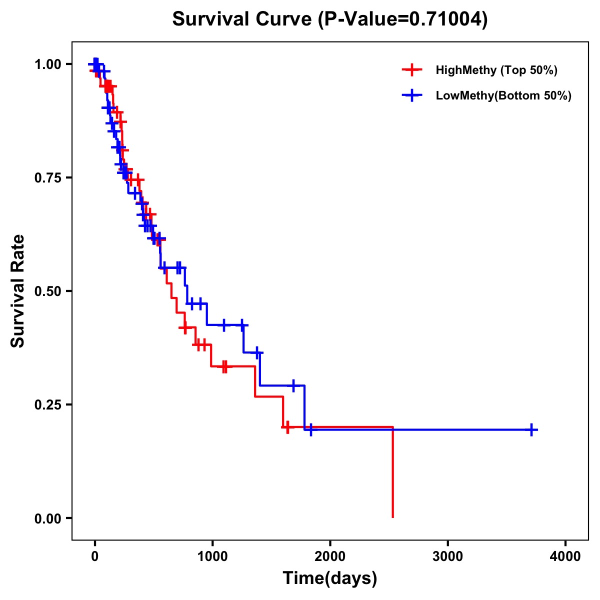 | Survival Curve of Esophagus Cancer of Expression | Survival Curve of Esophagus Cancer of Methylation | ||