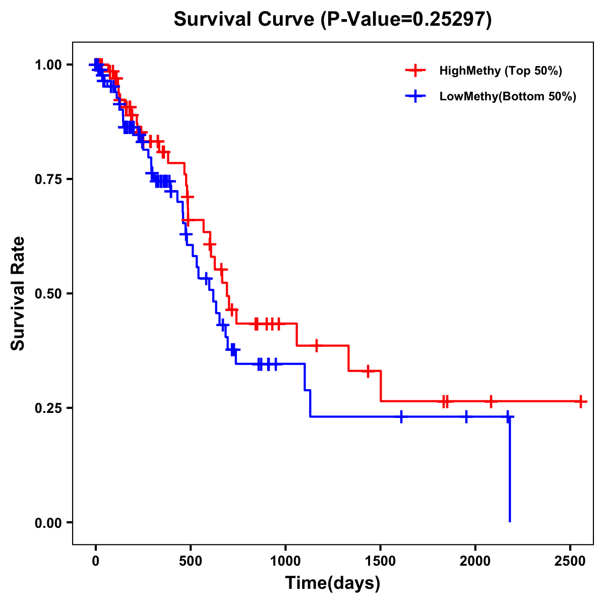| Survival Curve of Pancreatic Cancer of Expression | Survival Curve of Pancreatic Cancer of Methylation | ||