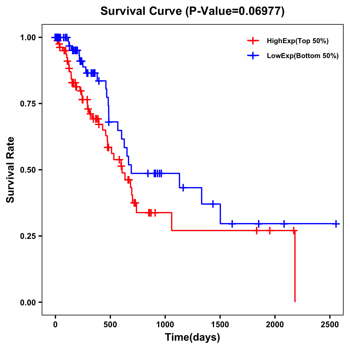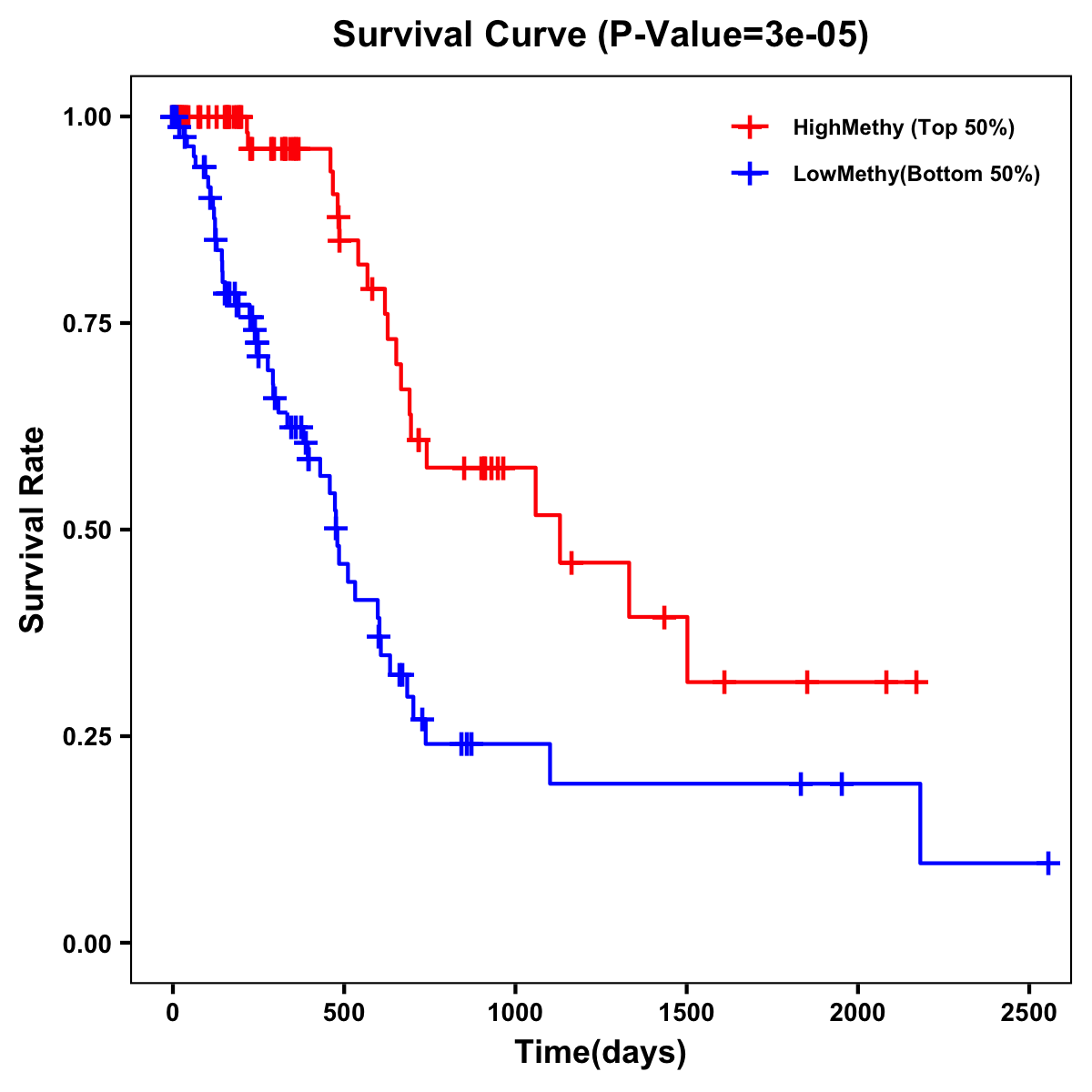 | Survival Curve of Pancreatic Cancer of Expression | Survival Curve of Pancreatic Cancer of Methylation | ||