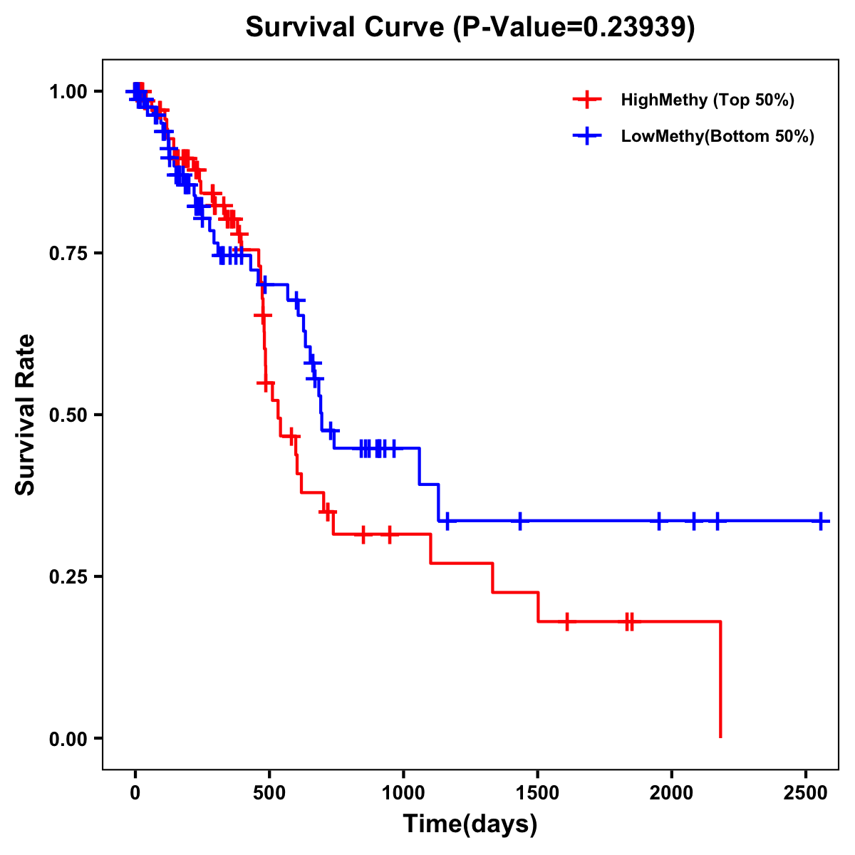| Survival Curve of Pancreatic Cancer of Expression | Survival Curve of Pancreatic Cancer of Methylation | ||