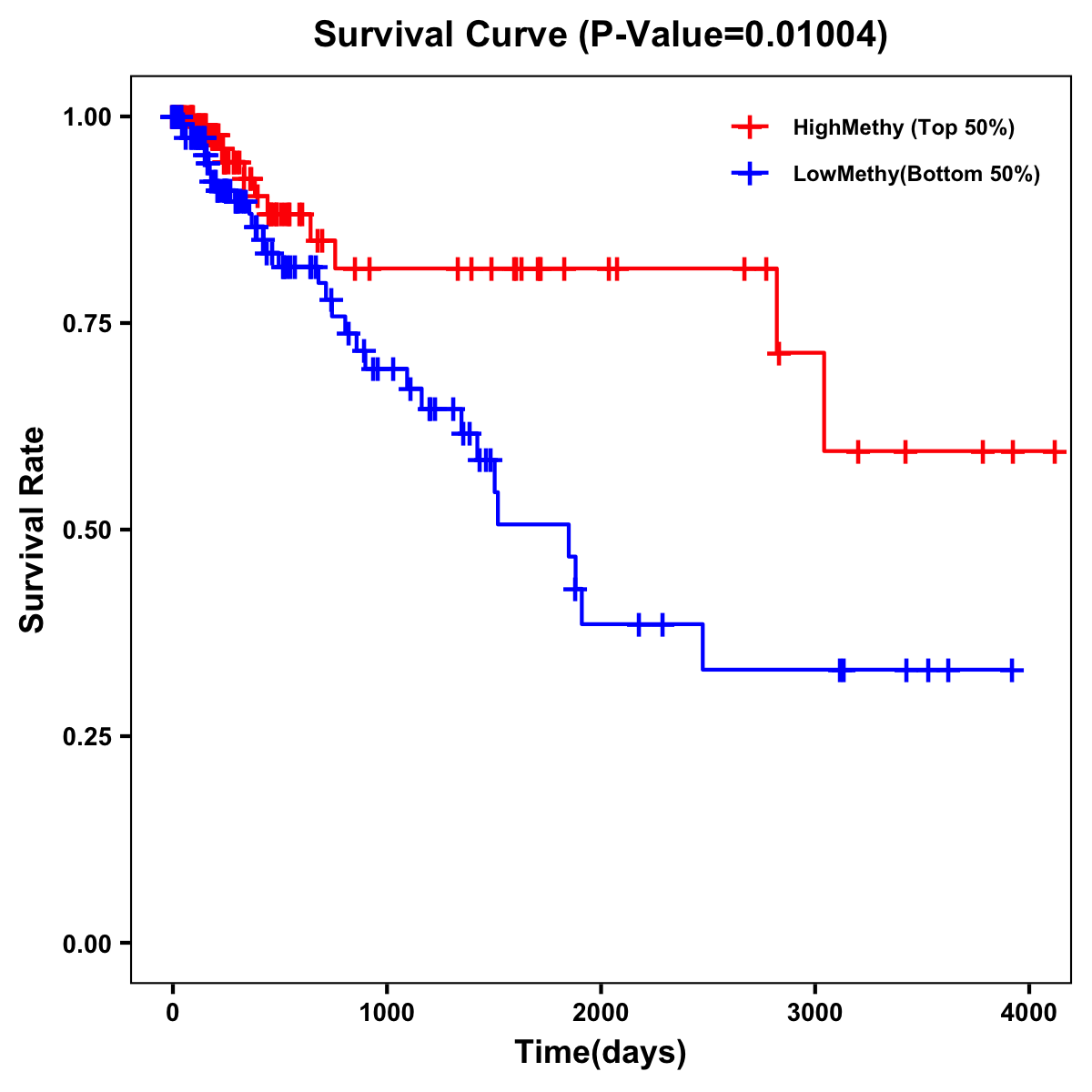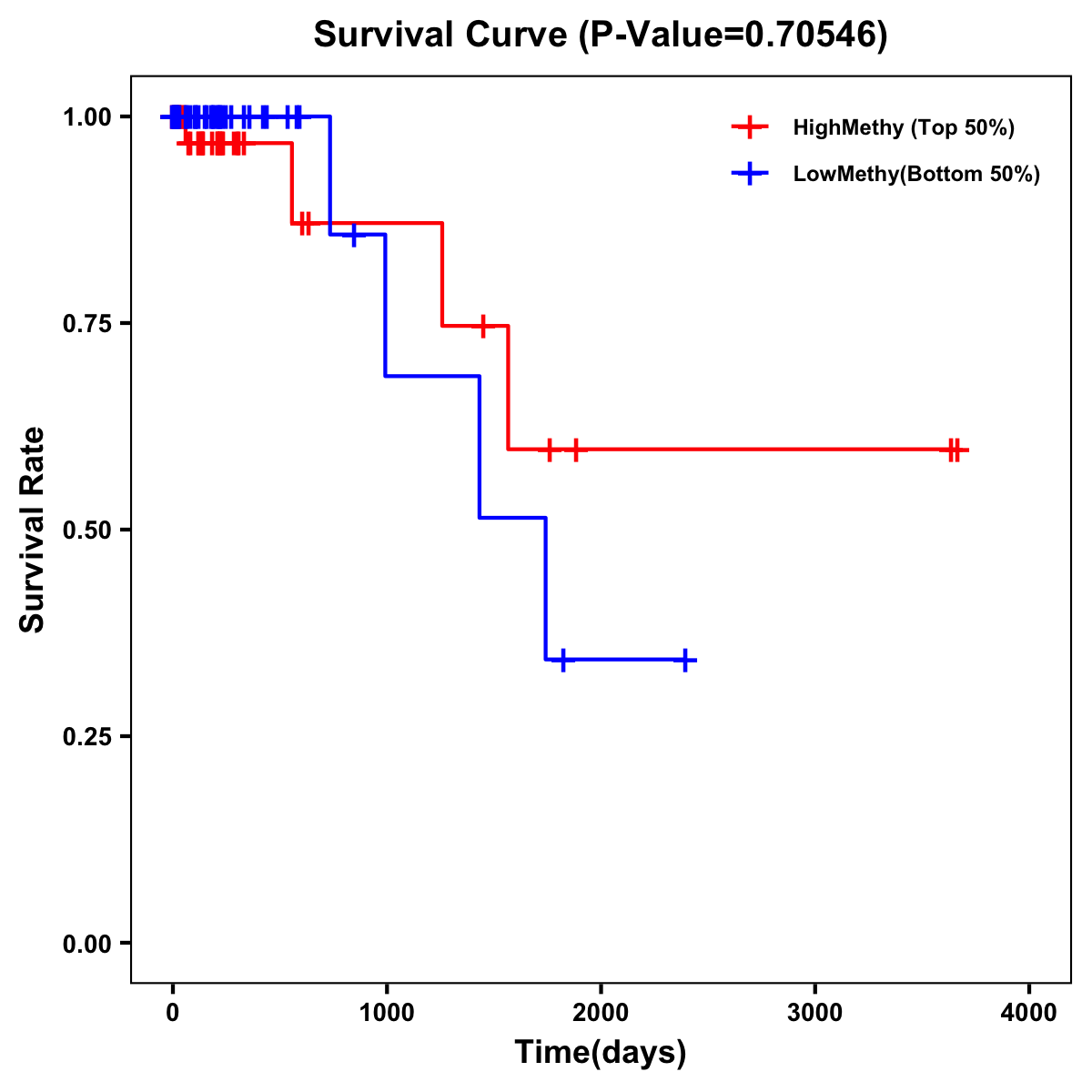| Survival Curve of Colon Cancer on Methylation Level |
