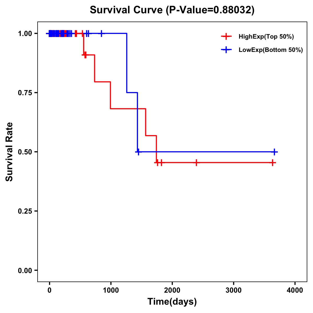 | Survival Curve of Colon Cancer on Expression Level |