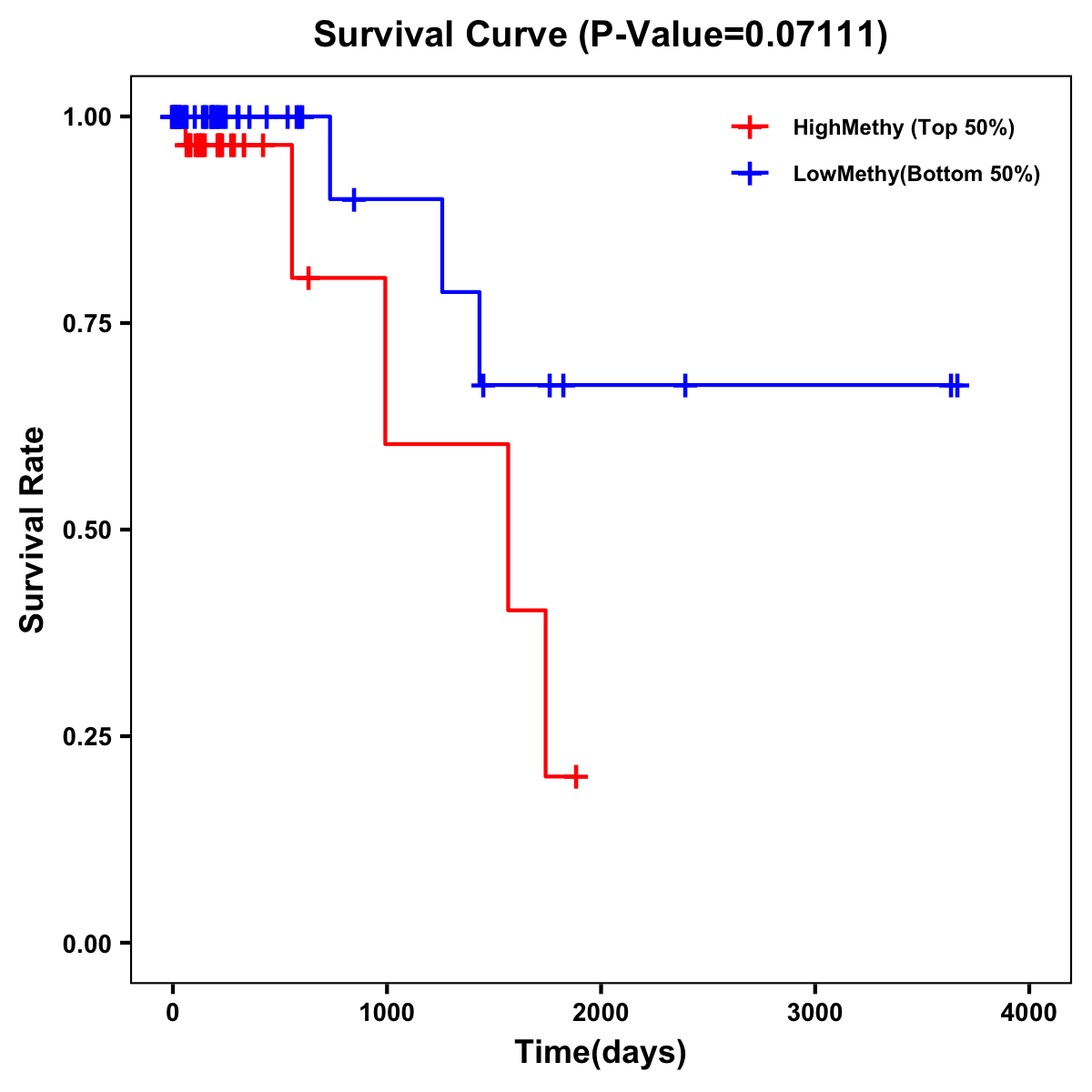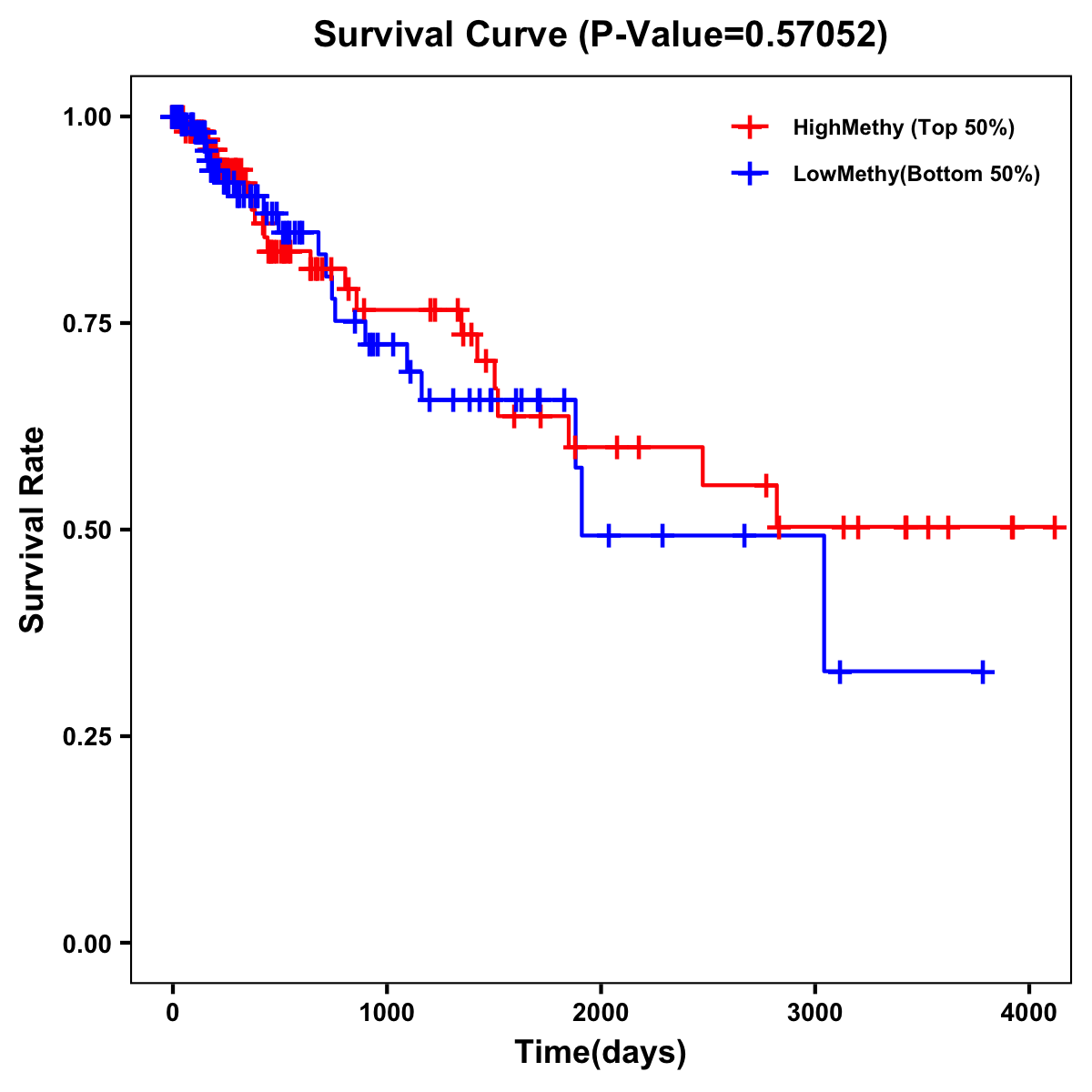 | Survival Curve of Colon Cancer on Methylation Level |