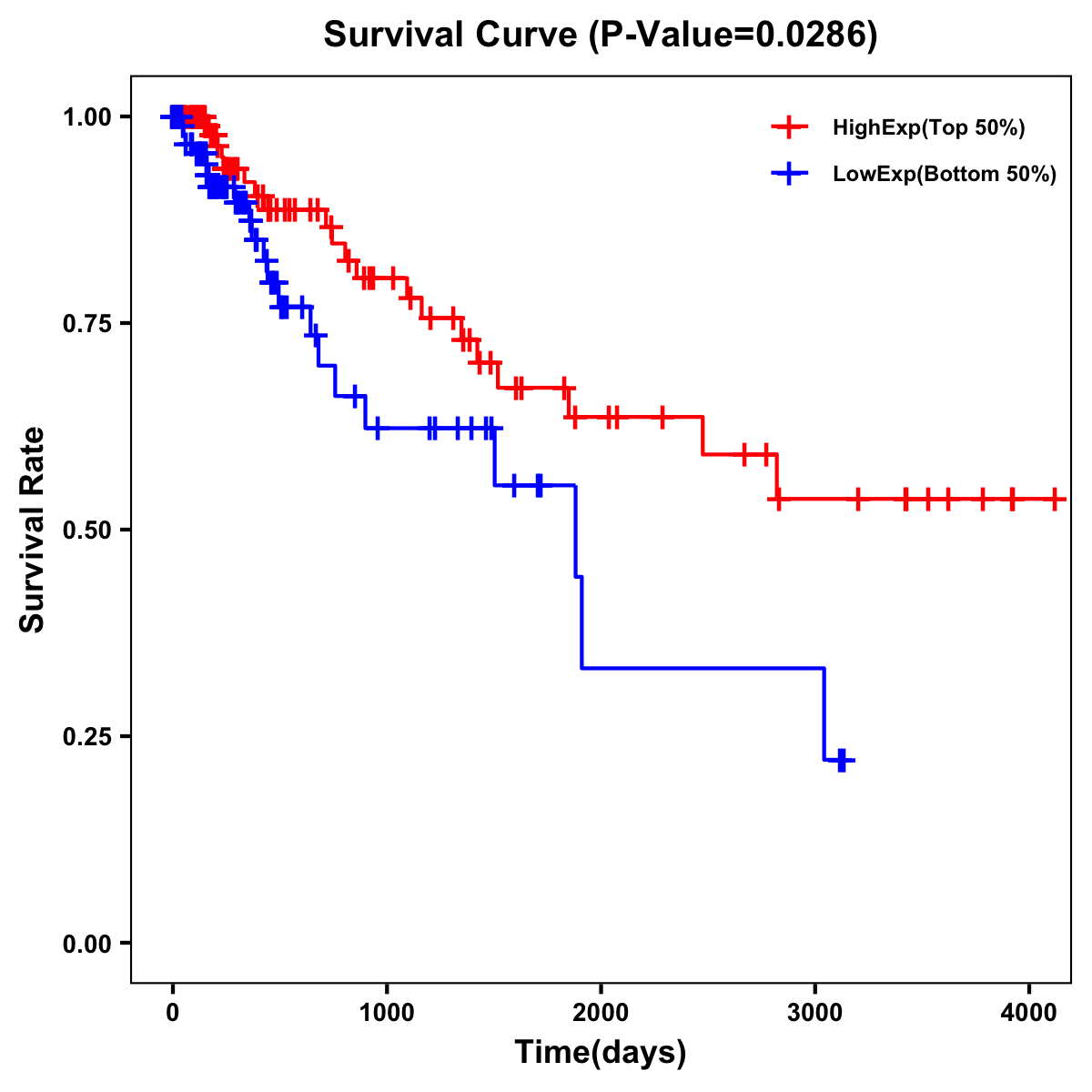 | Survival Curve of Colon Cancer on Expression Level |