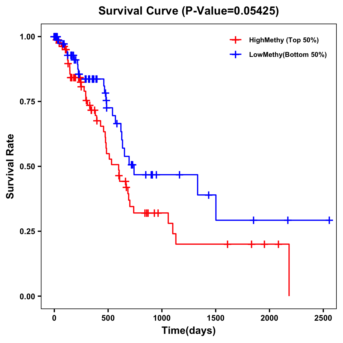 | Survival Curve of Pancreatic Cancer of Expression | Survival Curve of Pancreatic Cancer of Methylation | ||