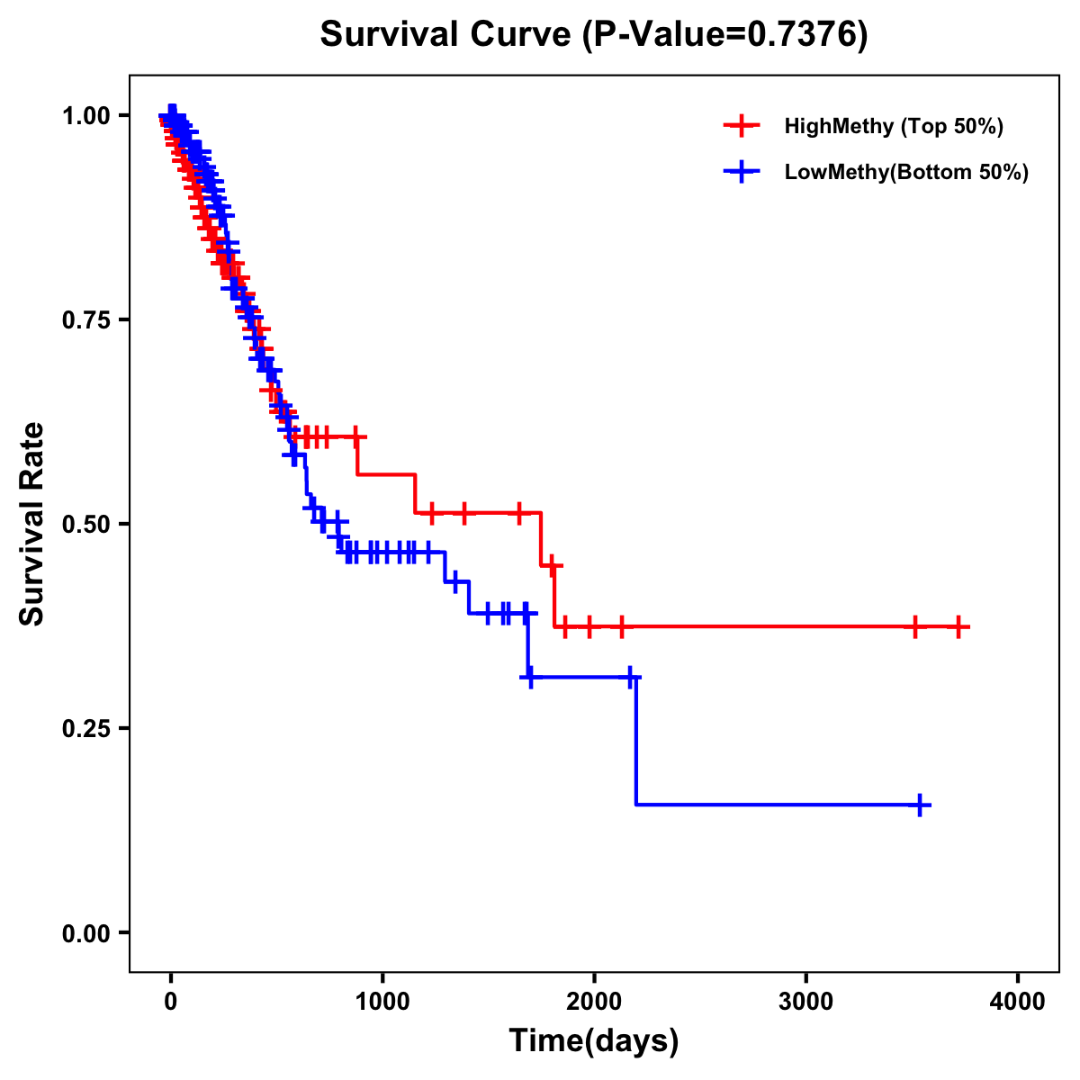 | Survival Curve of Stomach Cancer of Expression | Survival Curve of Stomach Cancer of Methylation | ||
