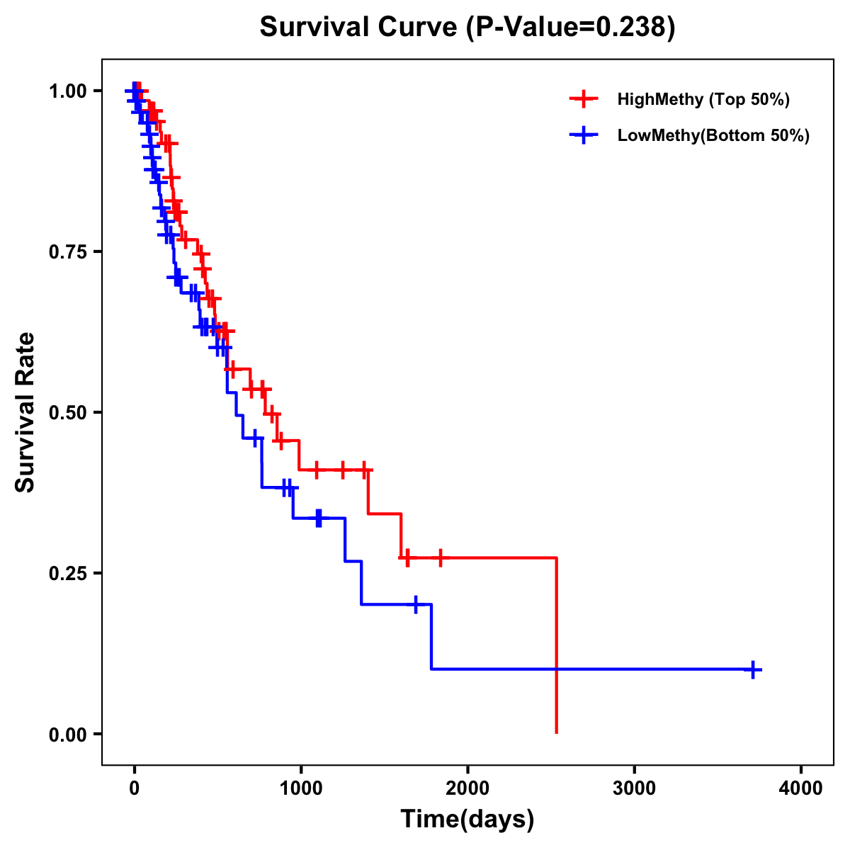 | Survival Curve of Esophagus Cancer of Expression | Survival Curve of Esophagus Cancer of Methylation | ||