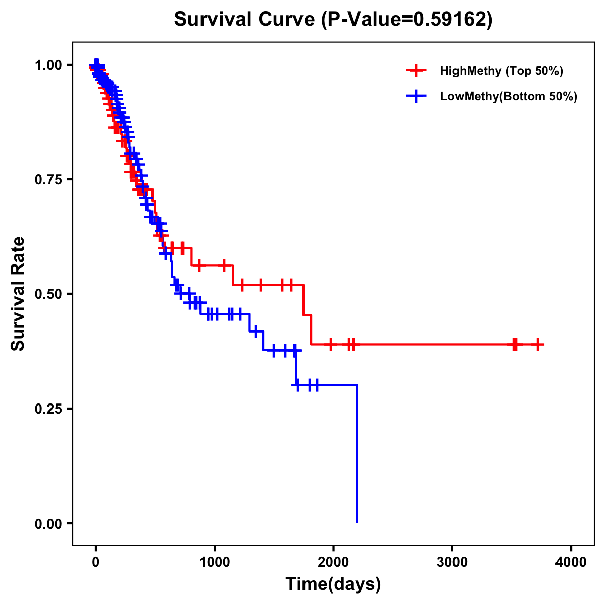 | Survival Curve of Stomach Cancer of Expression | Survival Curve of Stomach Cancer of Methylation | ||