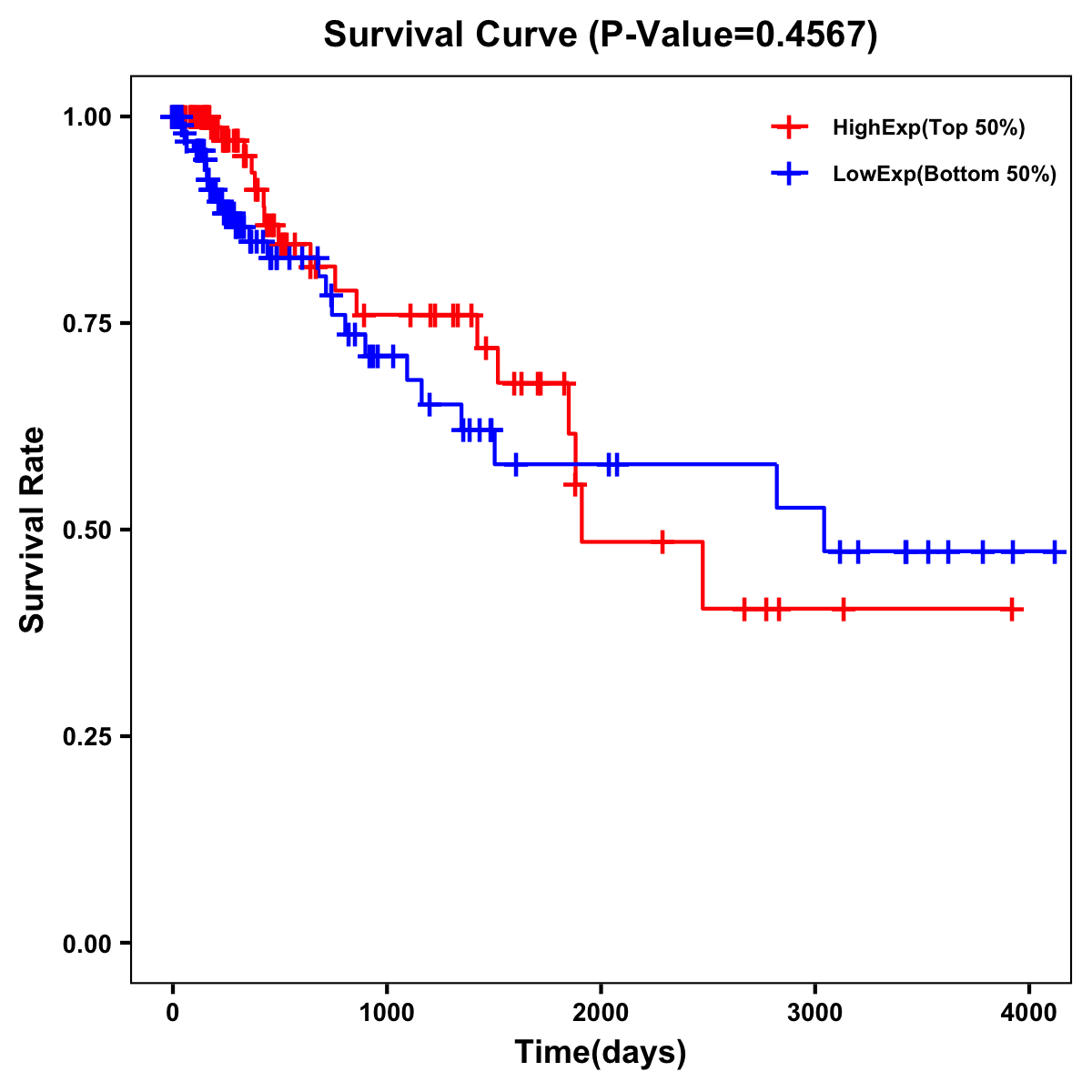 | Survival Curve of Colon Cancer on Expression Level |
