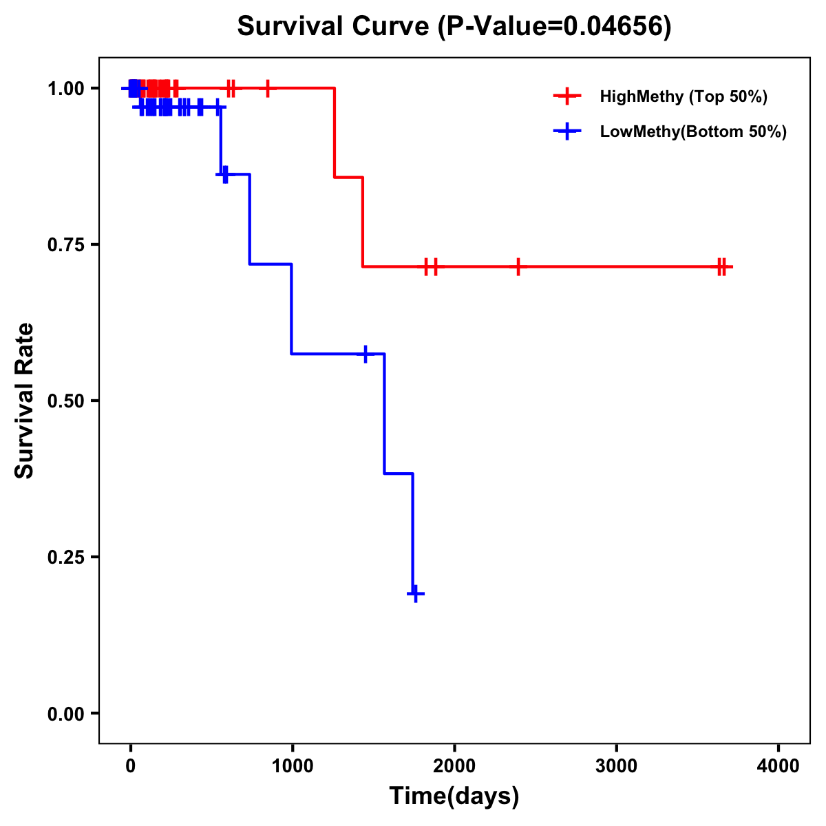 | Survival Curve of Colon Cancer on Methylation Level |