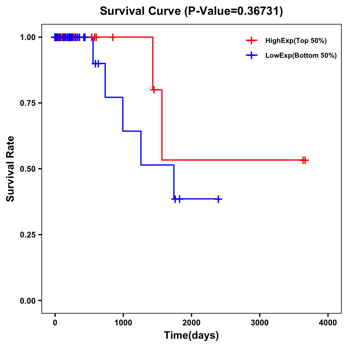 Survival Curve of Rectum Cancer on Expression Level |