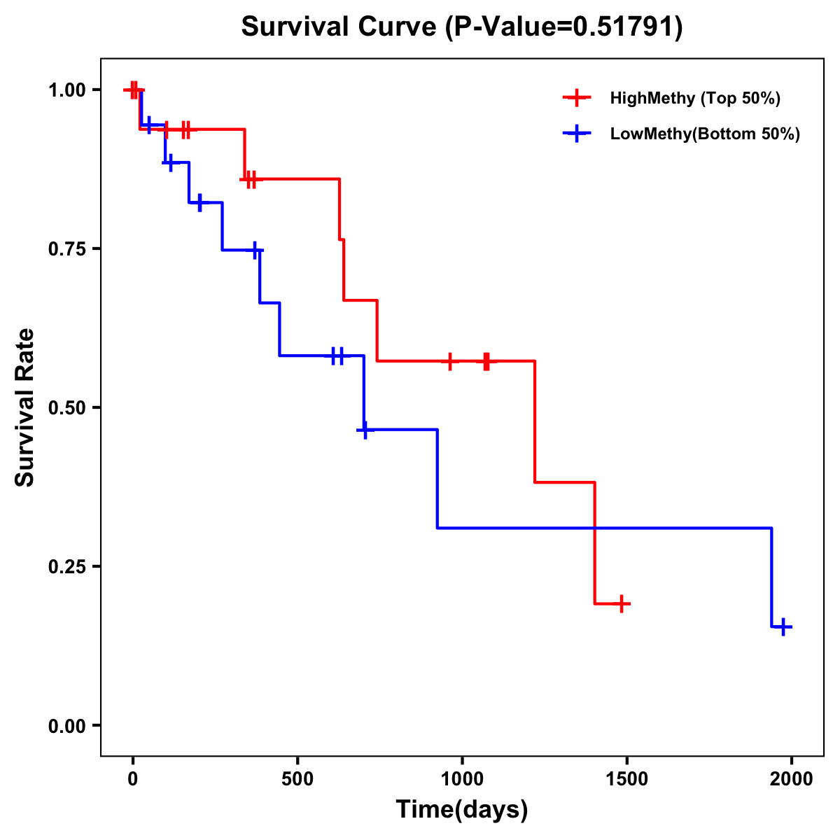 | Survival Curve of Biliary tract Cancer of Expression | Survival Curve of Biliary tract Cancer of Methylation | ||