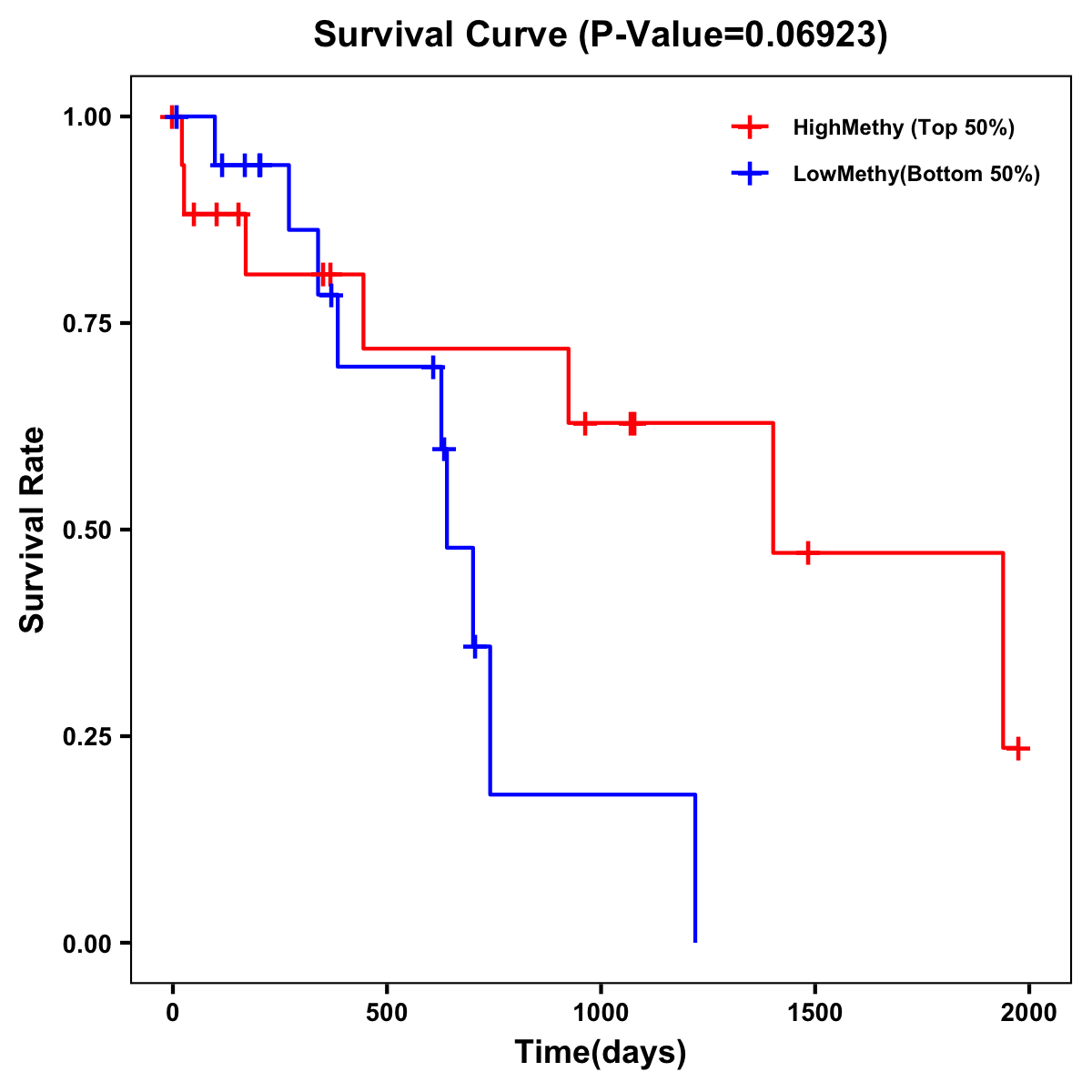| Survival Curve of Biliary tract Cancer of Expression | Survival Curve of Biliary tract Cancer of Methylation | ||