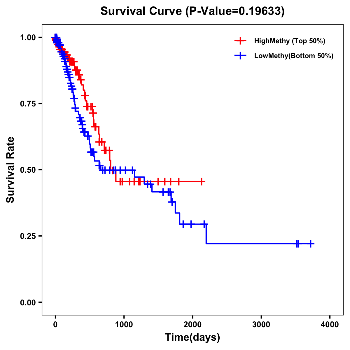 | Survival Curve of Stomach Cancer of Expression | Survival Curve of Stomach Cancer of Methylation | ||