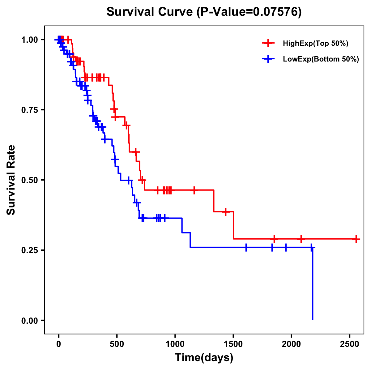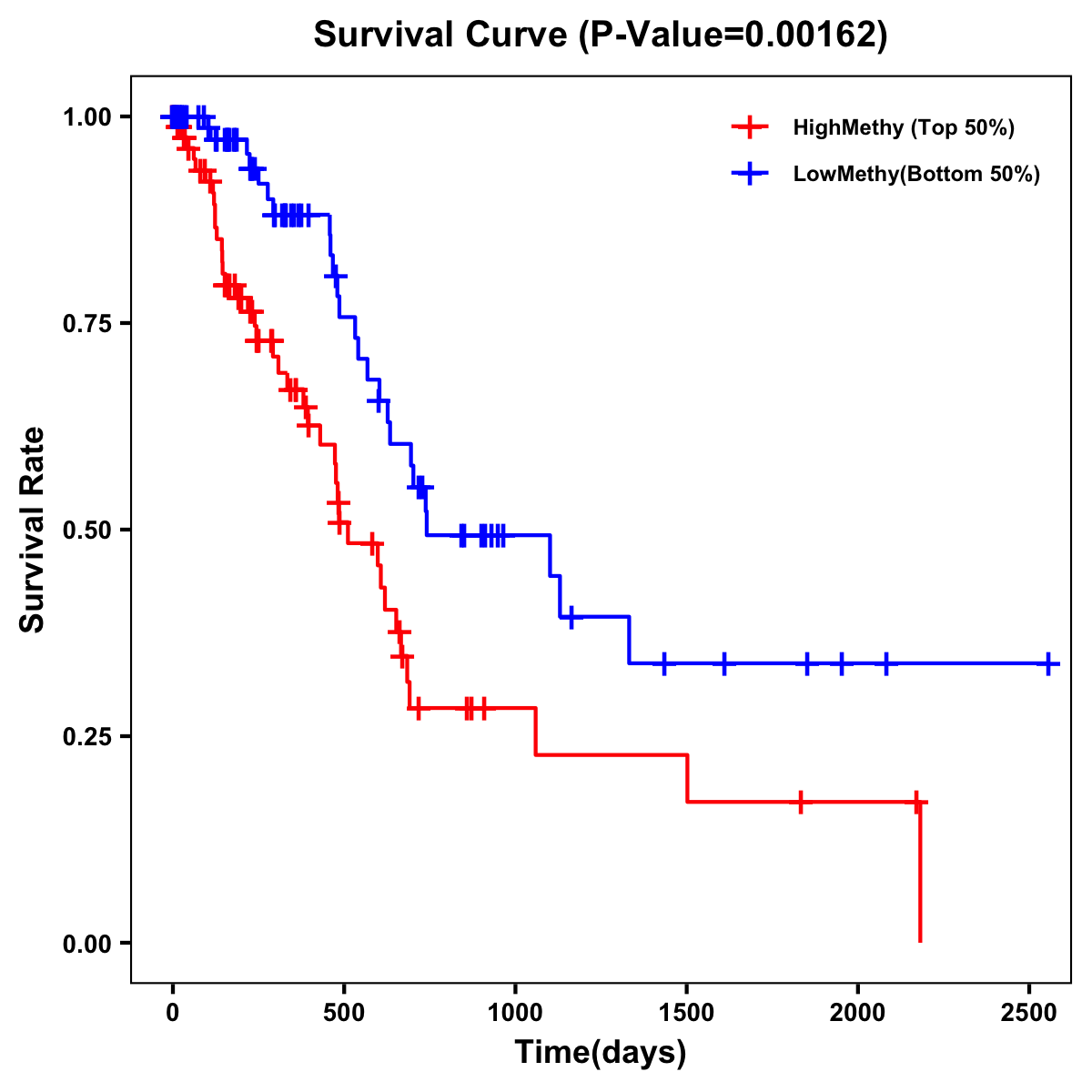 | Survival Curve of Pancreatic Cancer of Expression | Survival Curve of Pancreatic Cancer of Methylation | ||