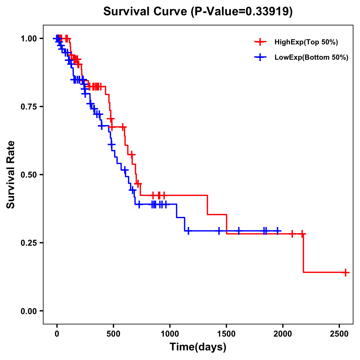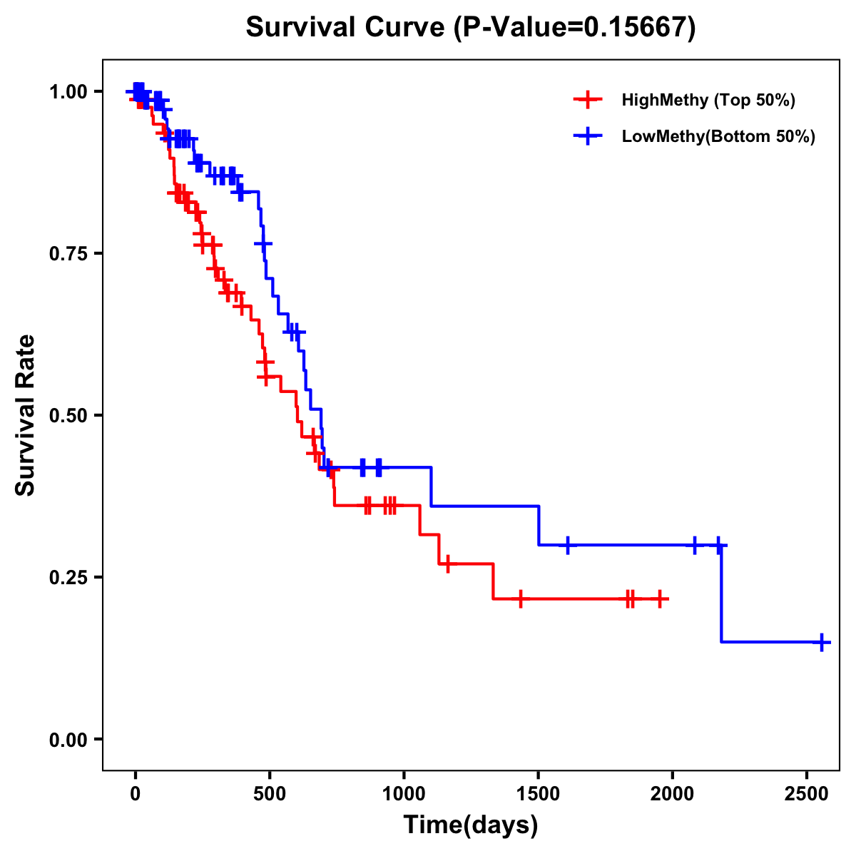 | Survival Curve of Pancreatic Cancer of Expression | Survival Curve of Pancreatic Cancer of Methylation | ||