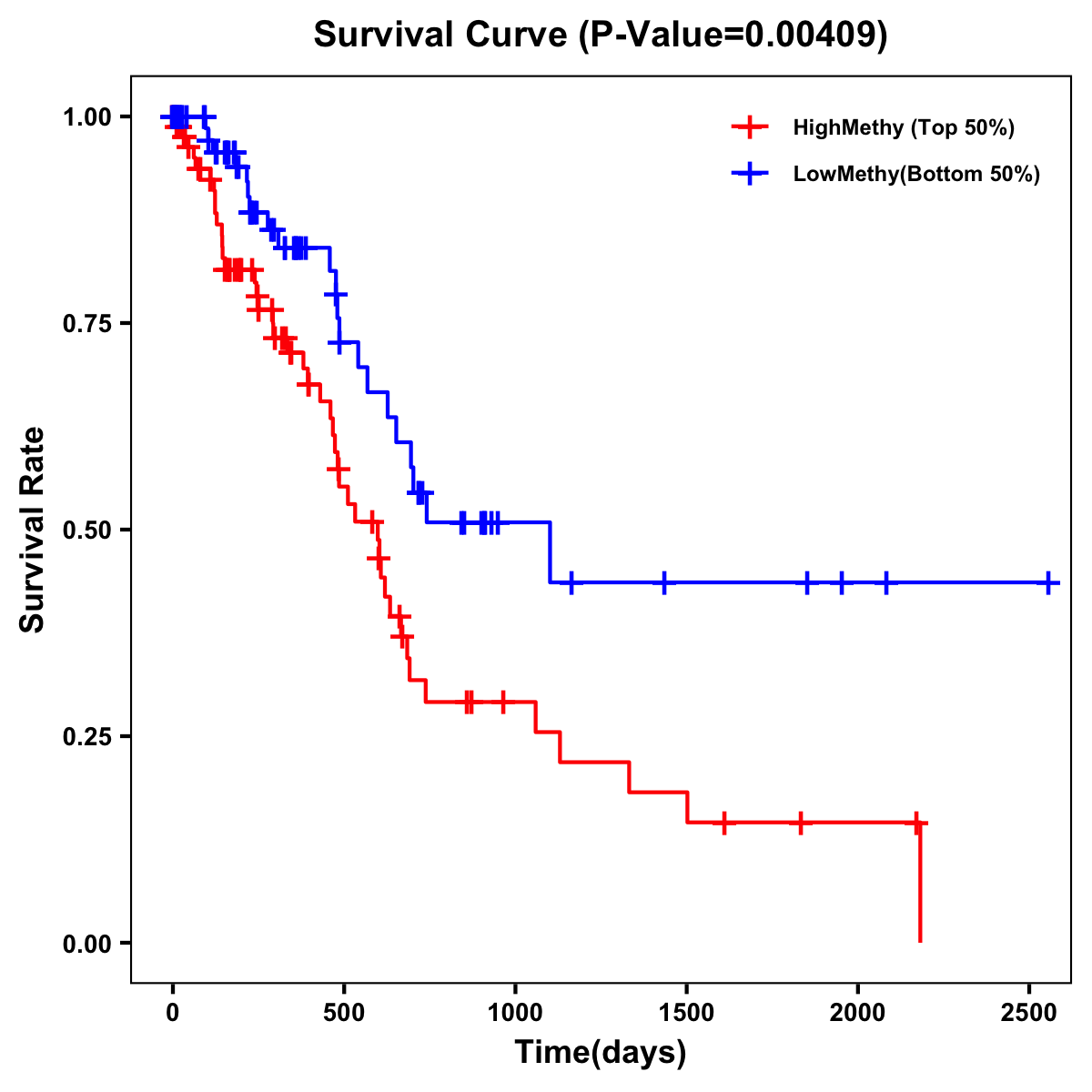 | Survival Curve of Pancreatic Cancer of Expression | Survival Curve of Pancreatic Cancer of Methylation | ||
